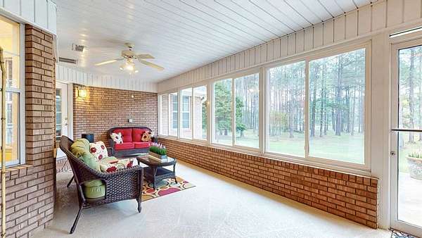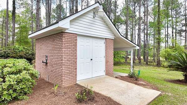 Beautiful 10 acres of prime property, pond front with a partial private little island. This highly desirable location provides convenient access to Tallahassee, FL, Thomasville, GA, and Cairo, this turn-key home offers custom cabinetry throughout. exceptional comfort, space, and charm. Featuring real wood accents and custom cabinetry, the expansive kitchen features corian countertops, tile flooring, a breakfast area, and a walk-in pantry, with a separate formal dining room perfect for hosting. The oversized living room includes built-ins and a cozy fireplace with electric logs, while the massive sunroom—filled with abundant windows and equipped with screens—provides a perfect year-round retreat, fully heated and cooled with access from both the living room and just outside the spacious owner's suite. The sunroom has spray crete flooring and overlooks a beautifully landscaped backyard and serene pond, offering ample space for relaxing or entertaining, complemented by a brick and concrete patio ideal for grilling. The large owner's suite features space for a sitting area, dual vanities with corian tops, and two separate walk-in closets with a custom built-in dresser, along with stunning pond views. Two additional bedrooms are generously sized and share an oversized bathroom. The laundry room includes custom cabinetry, and the double garage accommodates large vehicles while offering a storage room with a utility sink. An additional exterior-access storage room sits just off the garage, and the well is protected by a small building with extra storage and a lean-to. The property is adorned with an abundance of beautiful trees and flowering plants, including shrimp plants, blueberry bushes, orange azaleas, day lilies, daisies, a fig tree, satsumas, white fringe, Japanese magnolia, bradford pears, crepe myrtles, and more, making this home a truly exceptional find.