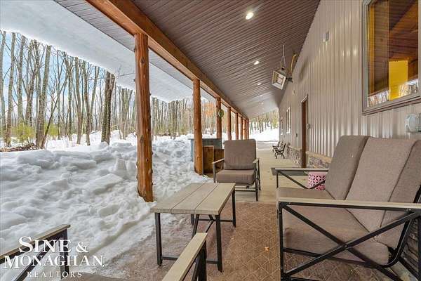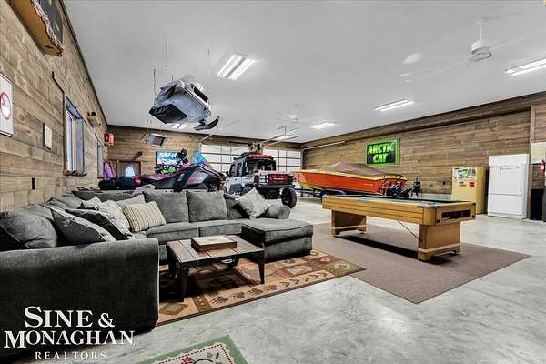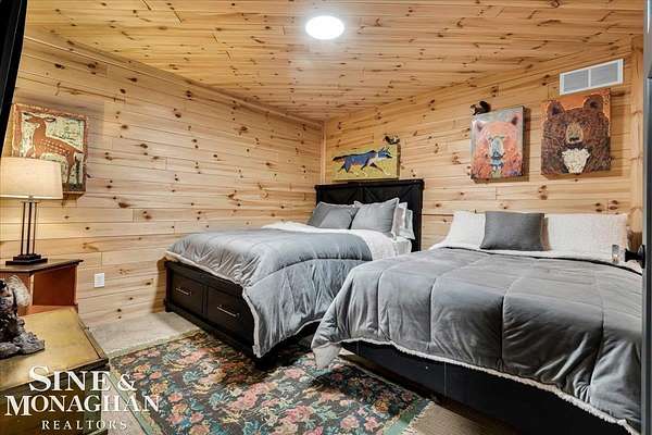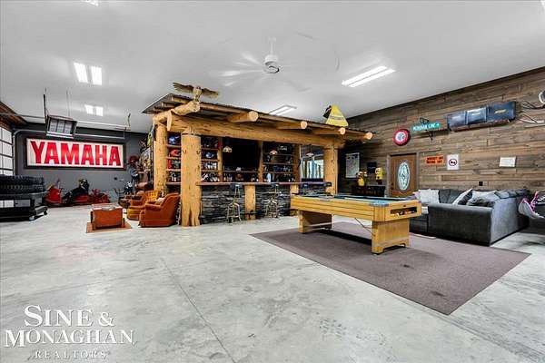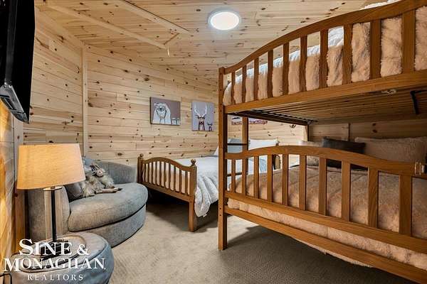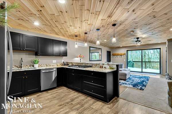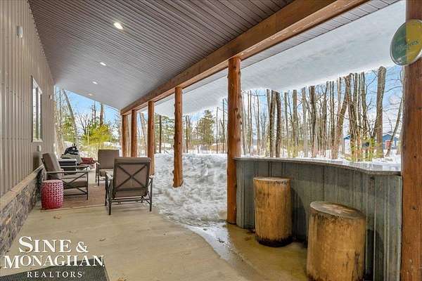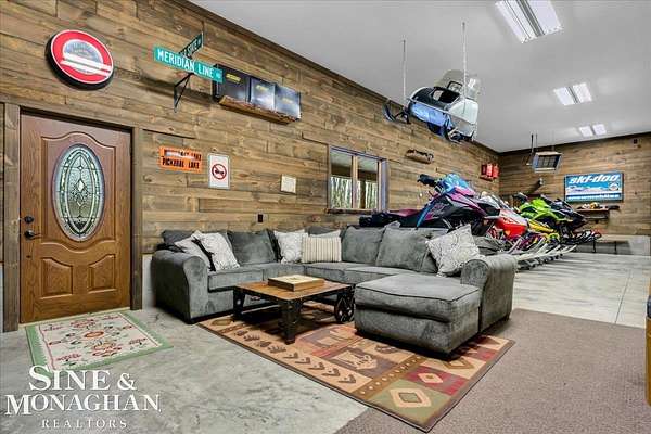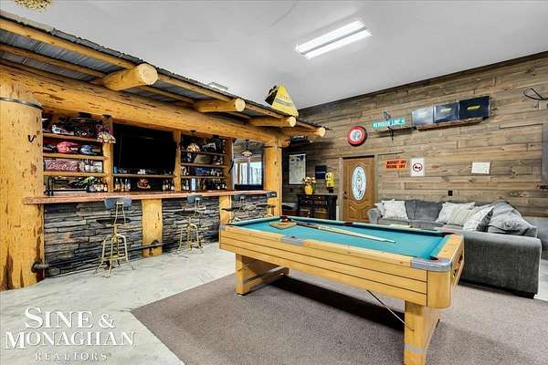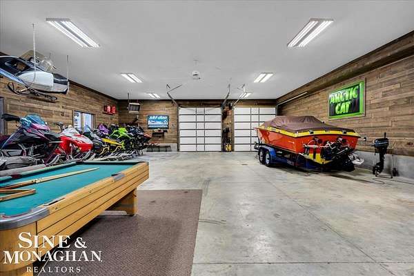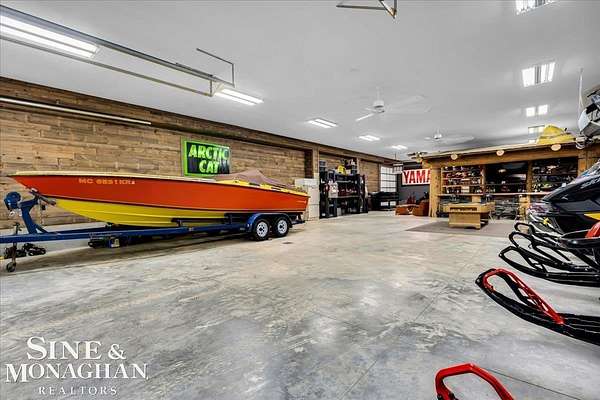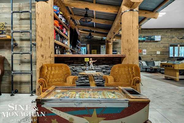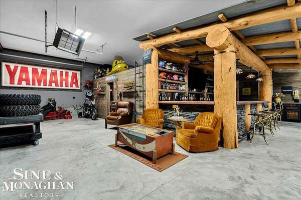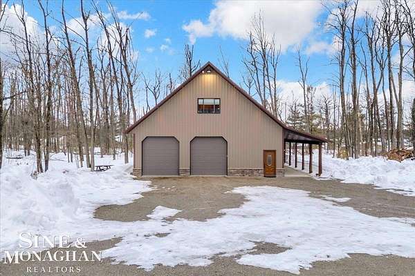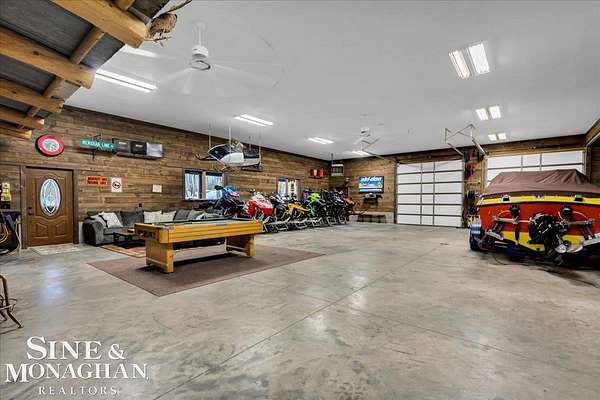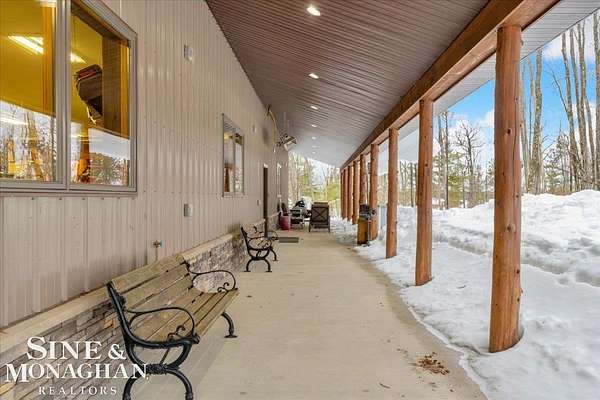 This extraordinary, one-of-a-kind barndominium is everything you imagine when you dream of the perfect up-north escape—crafted with intention, designed with character, and finished with no detail overlooked. More than just another Northern Michigan property- this is a lifestyle. Every inch of this home has been thoughtfully curated. From locally sourced timbers that frame the stunning custom full bar to the hammered copper countertops and carefully selected reclaimed and vintage elements throughout—this property blends rustic charm with refined, modern comfort in a way that is truly unmatched. The recently completed upper-level living space offers a warm and inviting retreat, featuring a spacious primary suite with a cozy sitting area and a spa-like bath complete with heated floors, a walk-in stone shower, dual marble vanities, a linen closet, and generous his-and-hers closets. Designed for gathering, the open-concept kitchen, dining, and living area is perfect for entertaining. Enjoy a large eat-in nook, stainless steel appliances, granite countertops, and access to a private balcony overlooking serene lake views. Two additional sleeping areas and a full bath—also featuring heated flooring—provide ample space to host family and guests with ease. Set on 10 beautiful acres directly across from Big Bear Lake, this property is an outdoor enthusiast’s dream. The expansive barn is built to impress, offering heated floors throughout, making it ideal for year-round use, storage, or housing all of your recreational toys. With immediate access to trails and endless room to roam, adventure is right outside your door. Ideally located just minutes from Lewiston, approximately 30 minutes to Gaylord, and under an hour to Boyne Mountain. Additional features include a striking live-edge custom staircase with ambient lighting and a comprehensive audio and video surveillance system throughout the interior and exterior of the property. An amazing opportunity to own a truly unforgettable Up North retreat.