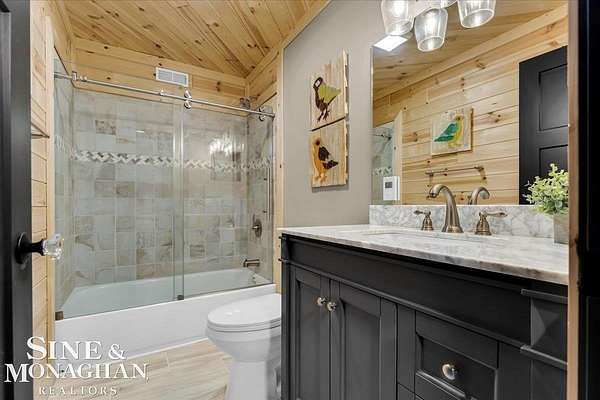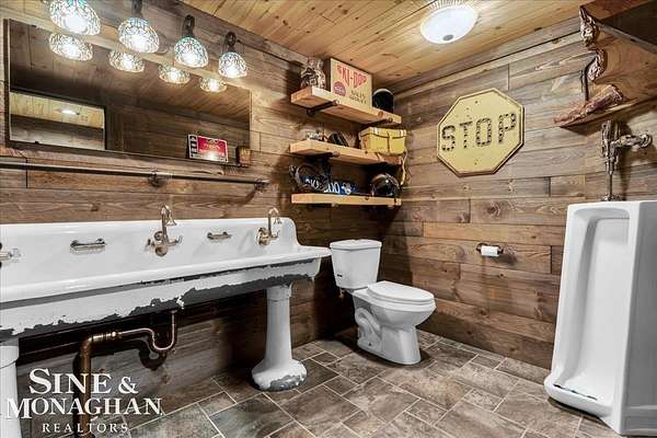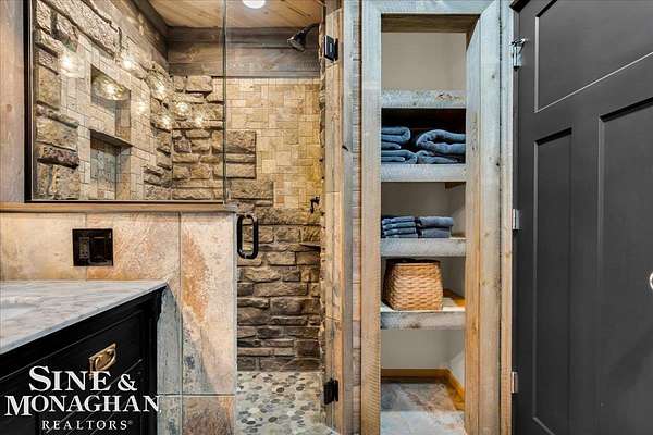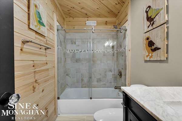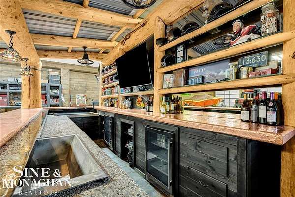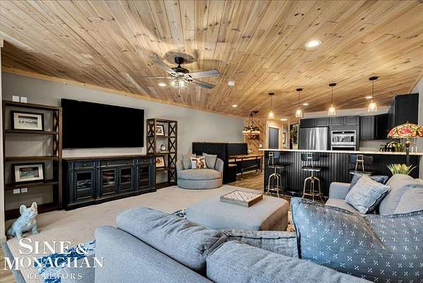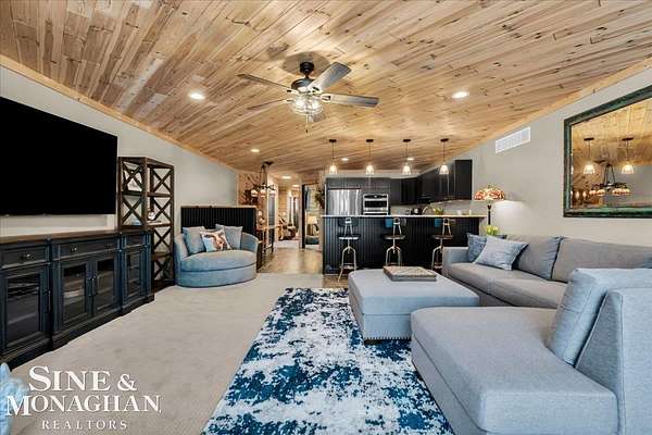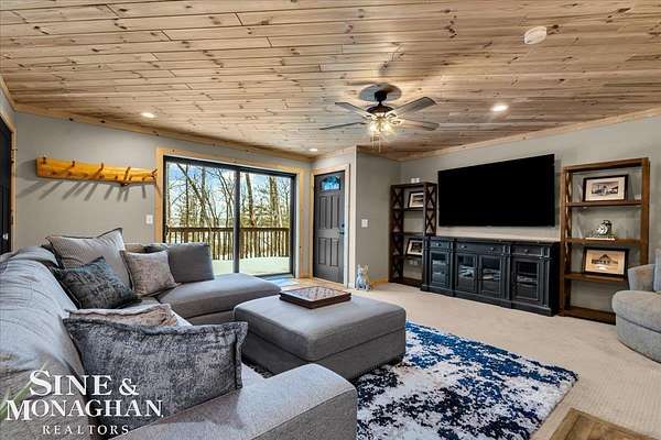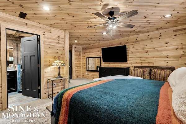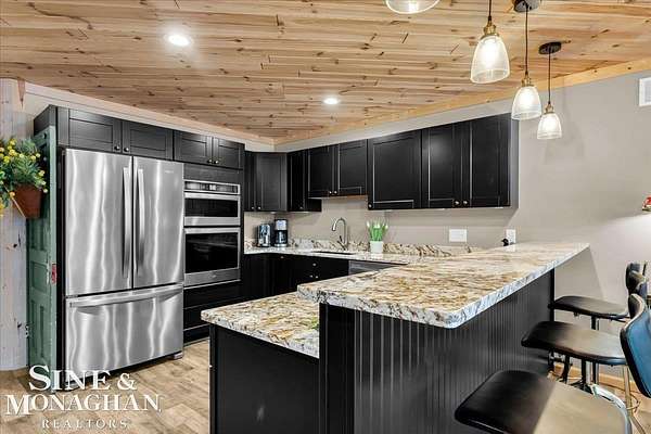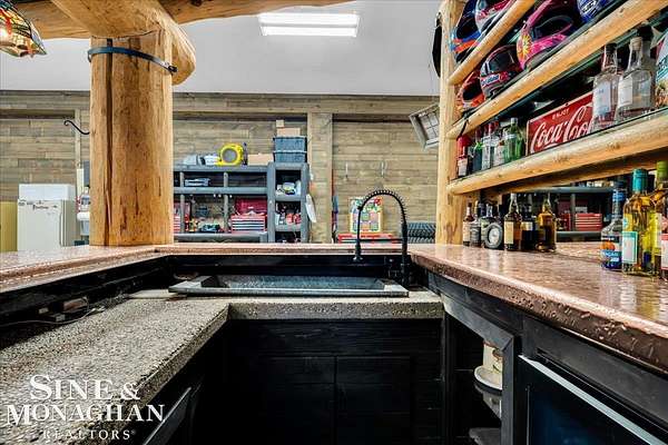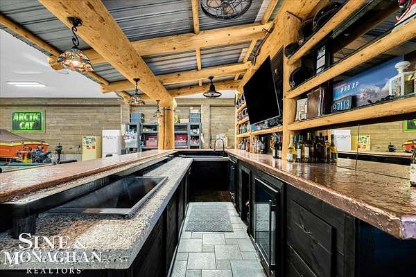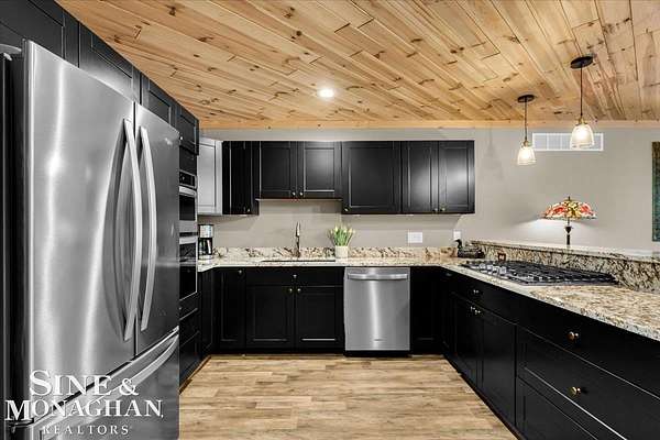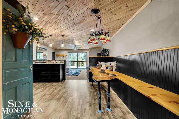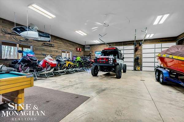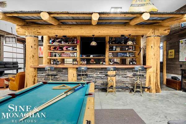 This extraordinary, one-of-a-kind barndominium is everything you imagine when you dream of the perfect up-north escape—crafted with intention, designed with character, and finished with no detail overlooked. More than just another Northern Michigan property- this is a lifestyle. Every inch of this home has been thoughtfully curated. From locally sourced timbers that frame the stunning custom full bar to the hammered copper countertops and carefully selected reclaimed and vintage elements throughout—this property blends rustic charm with refined, modern comfort in a way that is truly unmatched. The recently completed upper-level living space offers a warm and inviting retreat, featuring a spacious primary suite with a cozy sitting area and a spa-like bath complete with heated floors, a walk-in stone shower, dual marble vanities, a linen closet, and generous his-and-hers closets. Designed for gathering, the open-concept kitchen, dining, and living area is perfect for entertaining. Enjoy a large eat-in nook, stainless steel appliances, granite countertops, and access to a private balcony overlooking serene lake views. Two additional sleeping areas and a full bath—also featuring heated flooring—provide ample space to host family and guests with ease. Set on 10 beautiful acres directly across from Big Bear Lake, this property is an outdoor enthusiast’s dream. The expansive barn is built to impress, offering heated floors throughout, making it ideal for year-round use, storage, or housing all of your recreational toys. With immediate access to trails and endless room to roam, adventure is right outside your door. Ideally located just minutes from Lewiston, approximately 30 minutes to Gaylord, and under an hour to Boyne Mountain. Additional features include a striking live-edge custom staircase with ambient lighting and a comprehensive audio and video surveillance system throughout the interior and exterior of the property. An amazing opportunity to own a truly unforgettable Up North retreat.