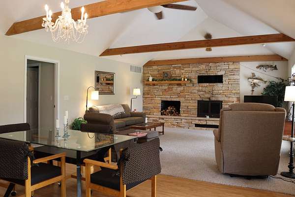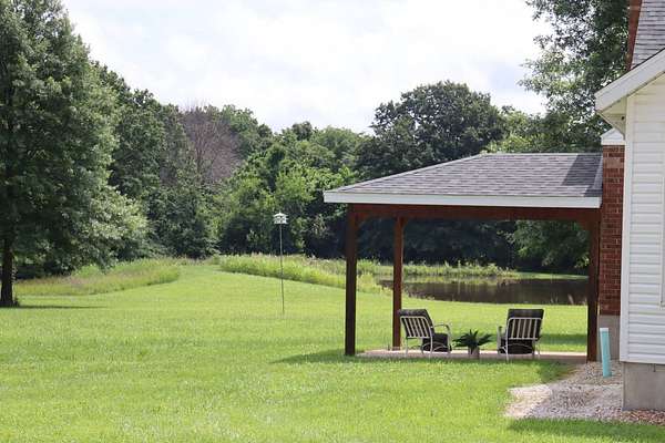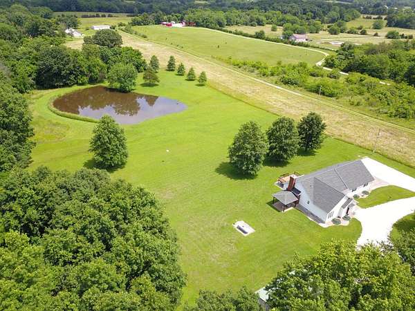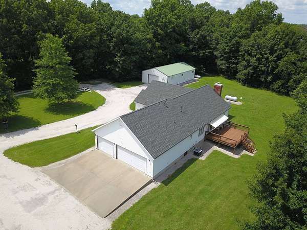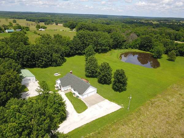 5 acres and a beautiful 3 Bedroom, 2 and a half bath, one owner, custom-built home. Very Nice home features high beamed ceilings, front entryway, efficient kitchen with plenty of cabinet space, a walk-out back deck overlooking a large pond. and a fireplace with a big open floor plan. A roomy 3-car attached garage provides an additional 848 square feet of space. The garage is accessible from the living area and features a safe room and a stairway for additional attic space. Approximately 2 miles from Stockton, Missouri and a few minutes to the nearest Boat dock at Crabtree Cove on beautiful Stockton Lake. The 5 acres feature the large pond and mature trees in a park like setting. This property has a 30'x50' heated shop with big roll up 9' doors on each end for an easy pull through, already setup for your boat or any other equipment and tools you may have. The shop is also plumbed with a sink and fishing pole racks. This property and home are well maintained and taken care of.