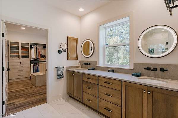 - Breakfast Bar, Built In Features, Double Vanity, Eat In Kitchen, Elevator, Granite Counters, Kitchen Island, Open Floorplan, Primary Downstairs, Walk In Closets