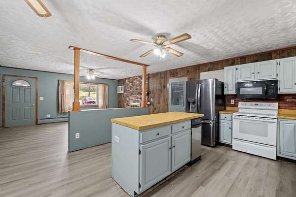 This lovingly maintained and spacious ranch in North Haverhill has been thoughtfully updated with all new flooring and fresh paint throughout, making it completely move-in ready. The main level offers three generously sized bedrooms, a full bathroom, a 3/4 bathroom, an open-concept kitchen and living area, and a large bonus rec room with its own private entrance -- perfect for guests, hobbies, or a home business. The basement features previously finished rooms that provide additional flexibility, including space for extra living areas, a home office, or a gym, along with a half bathroom and a cozy wood stove in one of the rooms. Additional highlights include a newer roof and gutters, a freshly repaved horseshoe driveway, a large newer shed, generator-ready setup, and a recently painted exterior. Ideally located just minutes from hiking trails and year-round outdoor recreation, this home is less than 40 minutes to Littleton, Cannon Mountain, and Loon Mountain, and about a 45-minute drive to Dartmouth Hitchcock Medical Center. This is a fantastic opportunity to own a well-cared-for home in a peaceful and convenient setting.