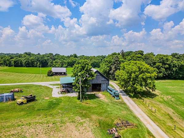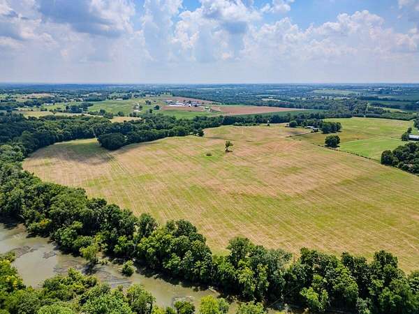 118,52 rolling acres, good soils, corn, beans tobacco, grown in past , nothing now may lease for beans. Access from Shawhan Road at fire station entrance Cemetery Road, shared single lane road, go to end, orange cones help show land ,,,,, entry at black barn , not drive to brick house , land goes around house. Half of bottom land in flood plain ,Licking River with access to river to canoe .Seller may carry part of mortgage,.