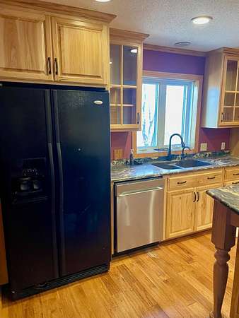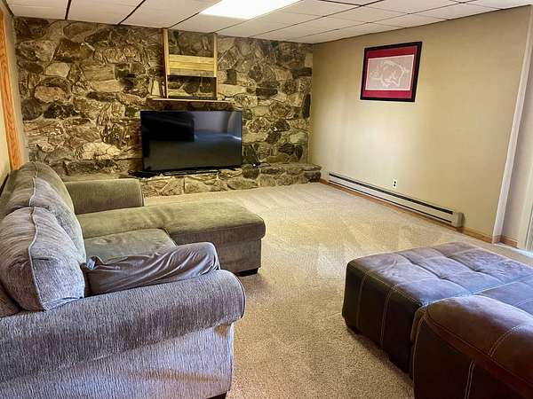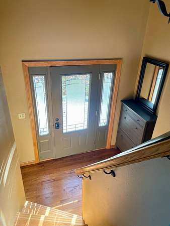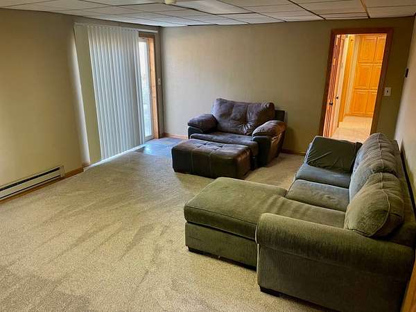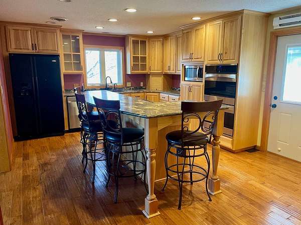 Country Living Close to Town on 12.38 Acres with Trail Access Enjoy the best of both worlds with this spacious split-foyer home situated on 12.38 acres-offering peaceful country living just minutes from town. A walking trail is conveniently located nearby, with wooded acreage to the north connecting directly to the trail system. The main level features three bedrooms, including a generous primary suite with ample closet space and a large private bathroom complete with a walk-in tiled shower. The updated kitchen is a standout, offering a large center island with built-in cooktop, double wall ovens, and easy access to the expansive deck-perfect for grilling and entertaining. A formal dining area opens to both the kitchen and living room, creating an inviting and functional flow. Main-floor laundry adds everyday convenience. The walk-out lower level provides a spacious family room with a cozy fireplace, two additional bedrooms, a 3/4 bath, and a large storage area with an attached single garage. Outside, take in beautiful southern views and wide-open space, along with a wooded area to the north that enhances privacy and outdoor enjoyment. There is plenty of room to add a shed or additional outbuildings to suit your needs. Septic system is in compliance, offering peace of mind. Experience comfort, privacy, and acreage-without giving up the convenience of town living.