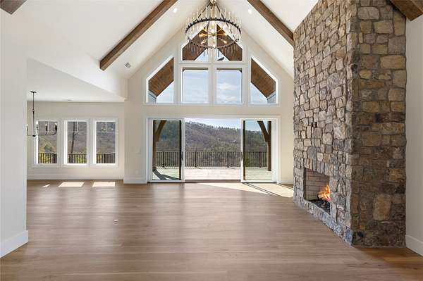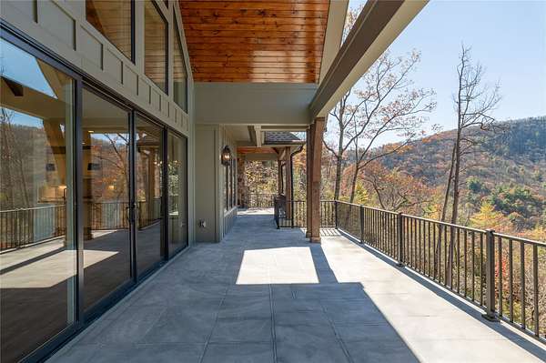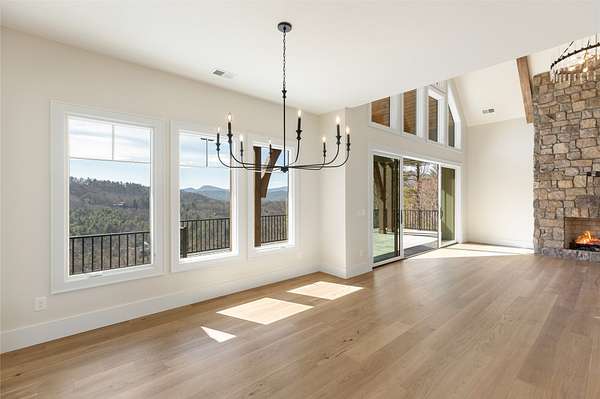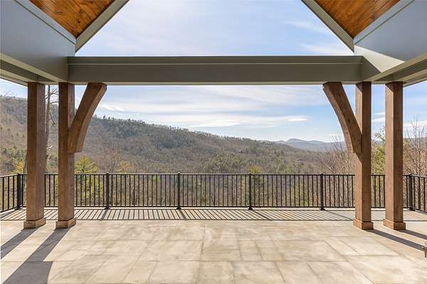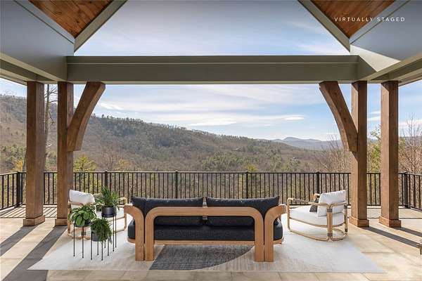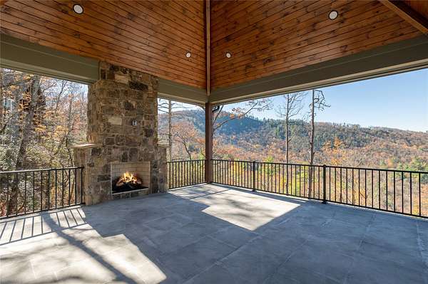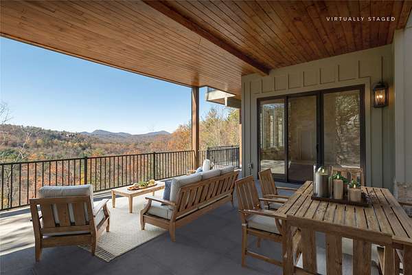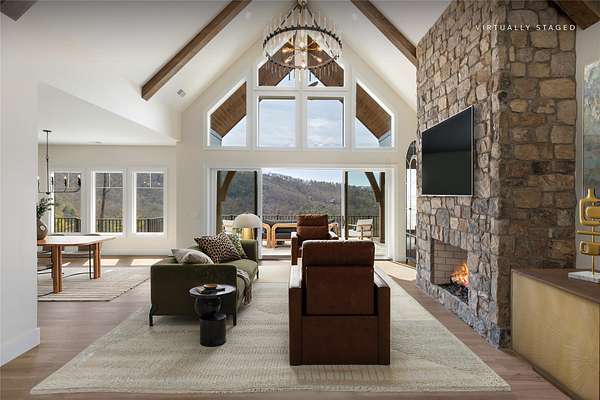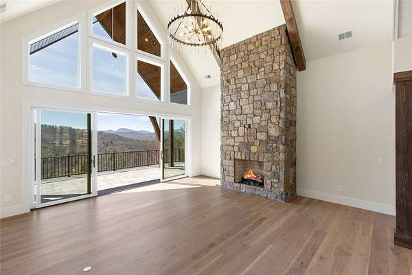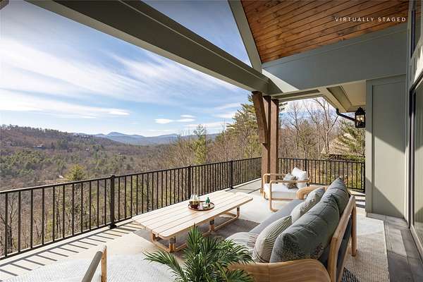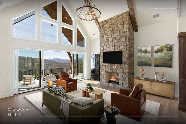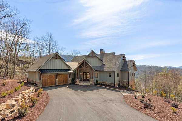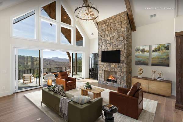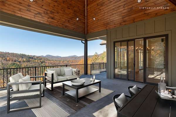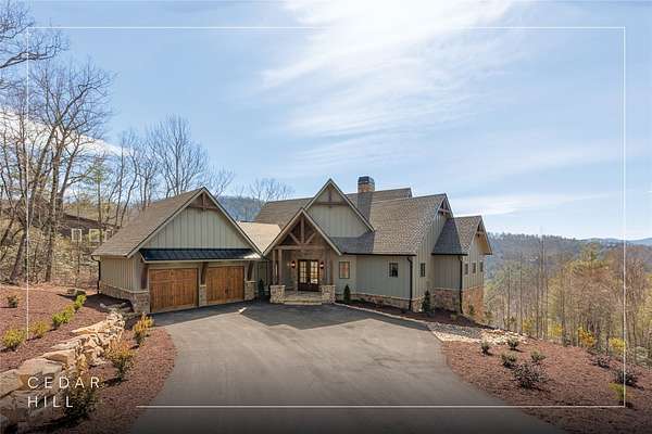 This newly constructed, custom-designed residence is nearing completion in Cedar Hill, one of the Highlands-Cashiers Plateau's most desirable gated communities. Perfectly positioned just minutes from Cashiers Village and Sapphire, the home offers the rare combination of refined mountain living and everyday convenience, with dining, boutique shopping, and outdoor recreation all within easy reach. As you arrive, the home's clean architectural lines and natural setting create an immediate sense of arrival. Expansive windows and glass doors capture breathtaking, long-range, layered mountain views, with Big Sheepcliff Mountain rising as a dramatic backdrop. With its western exposure, the home is filled with warm afternoon light and delivers spectacular sunset views across the ridgelines. The main level is designed for effortless living and entertaining, featuring an open great room with soaring vaulted ceilings and a beautiful stone fireplace with a gas log insert. The chef's kitchen flows seamlessly into adjacent gathering spaces, creating an inviting environment for hosting or quiet evenings at home. Two outdoor living areas extend the experience. A screened, covered porch with a gas log fireplace allows year-round enjoyment, while a separate covered veranda offers a serene setting to take in the cool mountain air and expansive views. The primary suite on the main level is spacious and private, featuring a large walk-in closet and an expansive bath with a palatial shower, creating a spa-like retreat. The lower level is designed for gathering, with a generous family room and wet bar opening to a covered deck featuring a fireplace and built-in BBQ. Three guest bedrooms and a dedicated bunk room provide ample accommodations for family and friends. A two-car garage adds everyday functionality. Surrounded by the lifestyle of the Highlands-Cashiers Plateau, enjoy access to world-class golf, Lake Glenville boating, hiking and waterfall trails, fly fishing, tennis, pickleball, and nearby wellness and fitness amenities. This home offers timeless design, exceptional outdoor living, and a lifestyle defined by mountain views, privacy, and convenience.