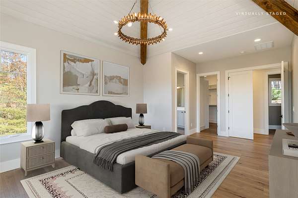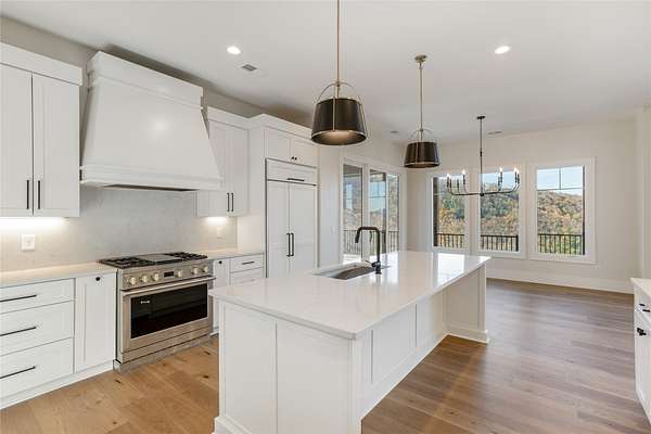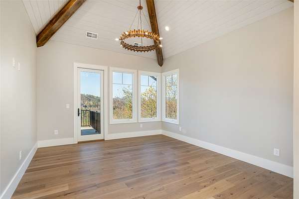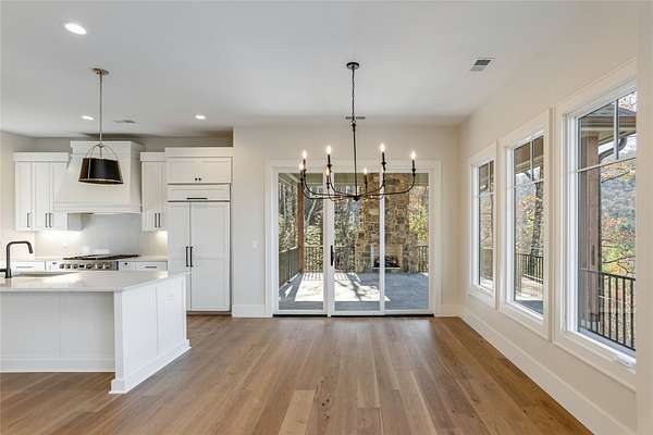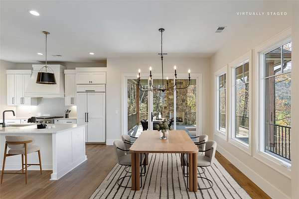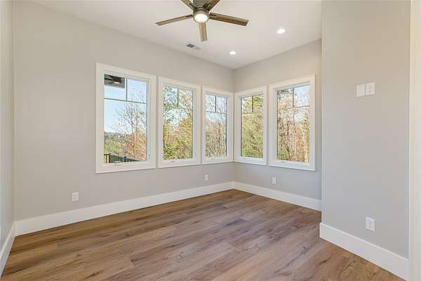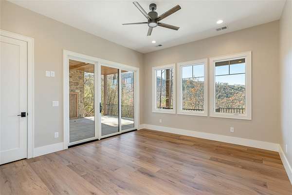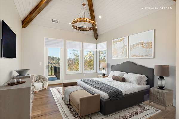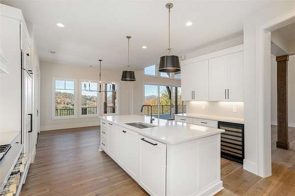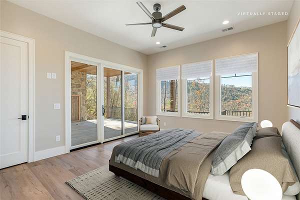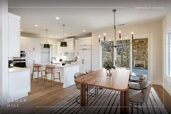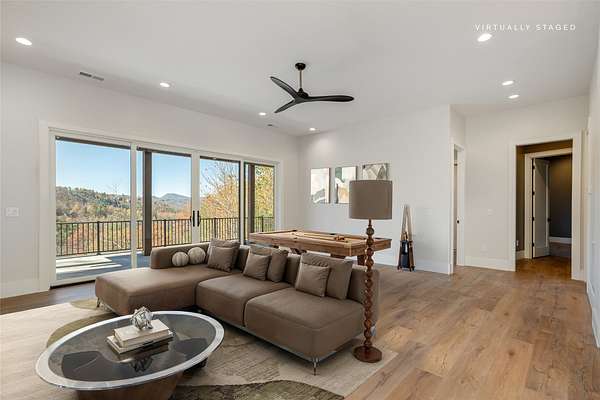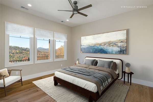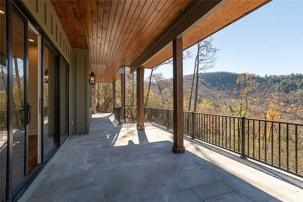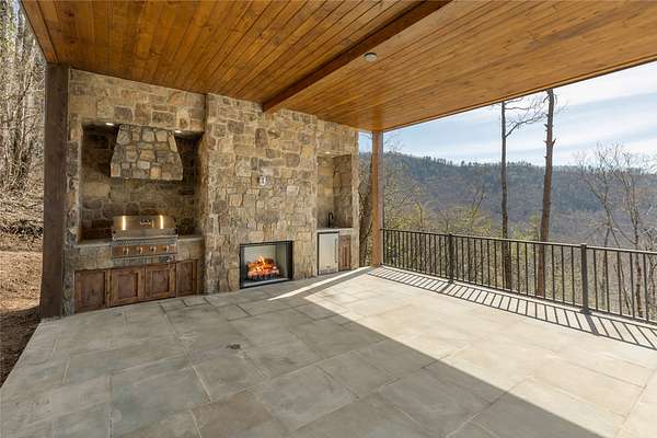 This newly constructed, custom-designed residence is nearing completion in Cedar Hill, one of the Highlands-Cashiers Plateau's most desirable gated communities. Perfectly positioned just minutes from Cashiers Village and Sapphire, the home offers the rare combination of refined mountain living and everyday convenience, with dining, boutique shopping, and outdoor recreation all within easy reach. As you arrive, the home's clean architectural lines and natural setting create an immediate sense of arrival. Expansive windows and glass doors capture breathtaking, long-range, layered mountain views, with Big Sheepcliff Mountain rising as a dramatic backdrop. With its western exposure, the home is filled with warm afternoon light and delivers spectacular sunset views across the ridgelines. The main level is designed for effortless living and entertaining, featuring an open great room with soaring vaulted ceilings and a beautiful stone fireplace with a gas log insert. The chef's kitchen flows seamlessly into adjacent gathering spaces, creating an inviting environment for hosting or quiet evenings at home. Two outdoor living areas extend the experience. A screened, covered porch with a gas log fireplace allows year-round enjoyment, while a separate covered veranda offers a serene setting to take in the cool mountain air and expansive views. The primary suite on the main level is spacious and private, featuring a large walk-in closet and an expansive bath with a palatial shower, creating a spa-like retreat. The lower level is designed for gathering, with a generous family room and wet bar opening to a covered deck featuring a fireplace and built-in BBQ. Three guest bedrooms and a dedicated bunk room provide ample accommodations for family and friends. A two-car garage adds everyday functionality. Surrounded by the lifestyle of the Highlands-Cashiers Plateau, enjoy access to world-class golf, Lake Glenville boating, hiking and waterfall trails, fly fishing, tennis, pickleball, and nearby wellness and fitness amenities. This home offers timeless design, exceptional outdoor living, and a lifestyle defined by mountain views, privacy, and convenience.