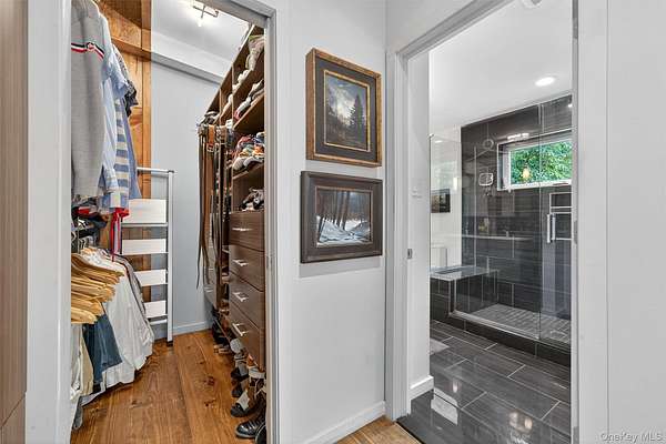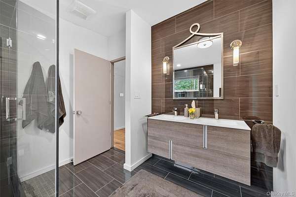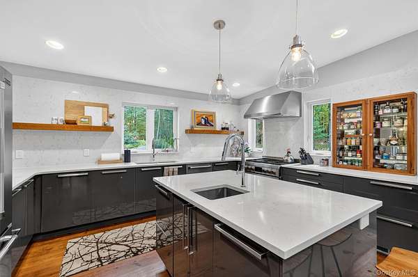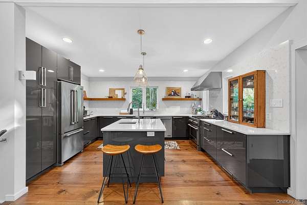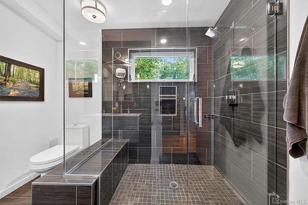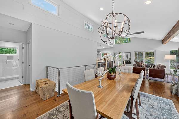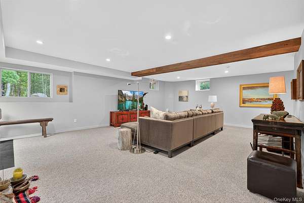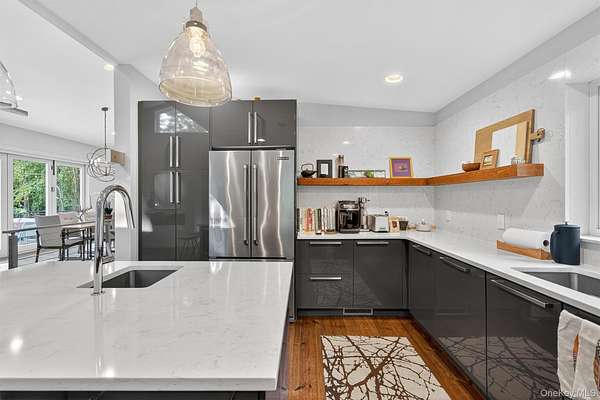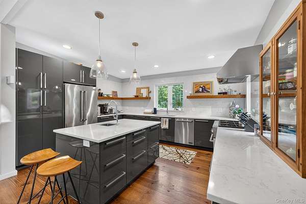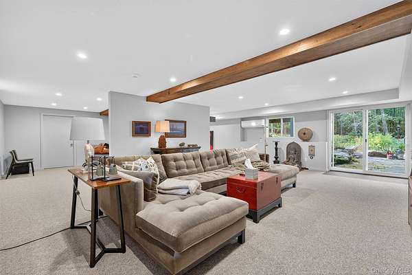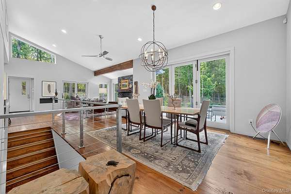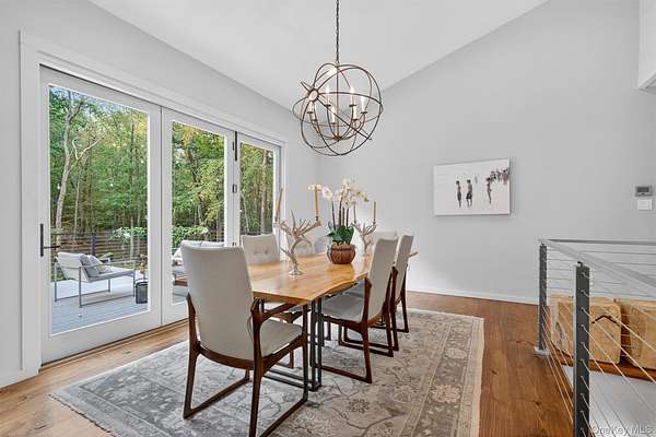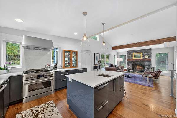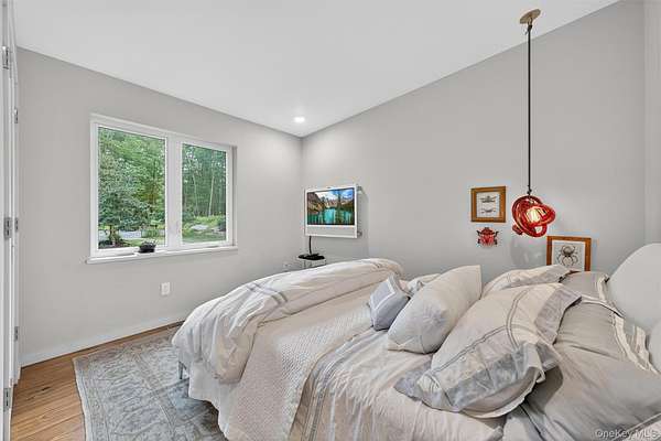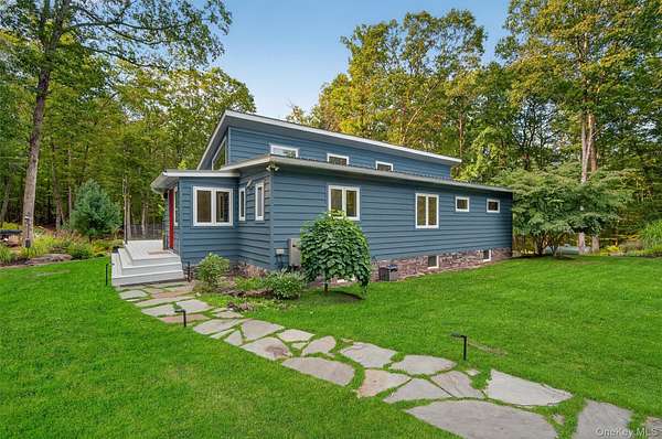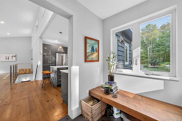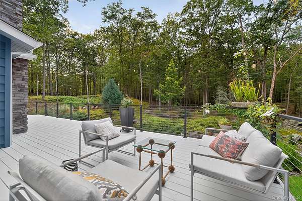 Modern Mid-Century Catskills Farms Home - Narrowsburg Tucked away on 10+ private acres just minutes from the Delaware River and the charming village of Narrowsburg, this modern mid-century Catskills Farms home offers style, comfort, and a seamless connection to nature. With 2 bedrooms and 2 full baths, the open floor plan flows effortlessly from space to space, framed by large windows that flood the home with natural light. The chef's kitchen impresses with a large island, high-end stainless steel appliances, and custom-tiled walls, opening into a spacious living room anchored by a stone fireplace. The dining area extends to the outdoors with fold-back glass doors leading to a generous deck-ideal for al fresco dining and entertaining while overlooking curated stone gardens, spacious fire pit, and wooded views. The main floor includes an ensuite bedroom with walk-in closet and a stunning glass-walled primary suite that feels like you're sleeping beneath the trees. Downstairs, find a stylish entertainment room, flanked by an office space and den-both with flexibility to serve as additional bedrooms. Sliding glass doors open to the backyard, while a laundry/utility area offers efficiency with on-demand hot water. Thoughtfully designed, beautifully landscaped, and perfectly secluded, this Catskills gem offers modern elegance in a serene country setting-all less than 2 hours from NYC.
