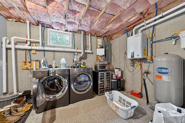 - Dishwasher, Dryer, Exhaust Fan, Gas Range, Oven, Range, Refrigerator, Stainless Steel Appliance(s), Tankless Water Heater, Washer, Wine Refrigerator