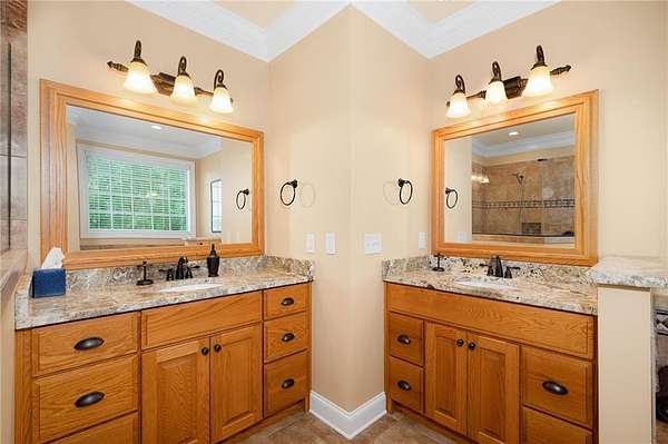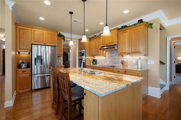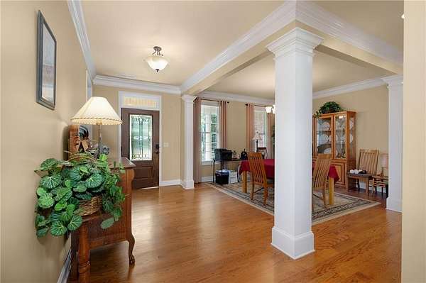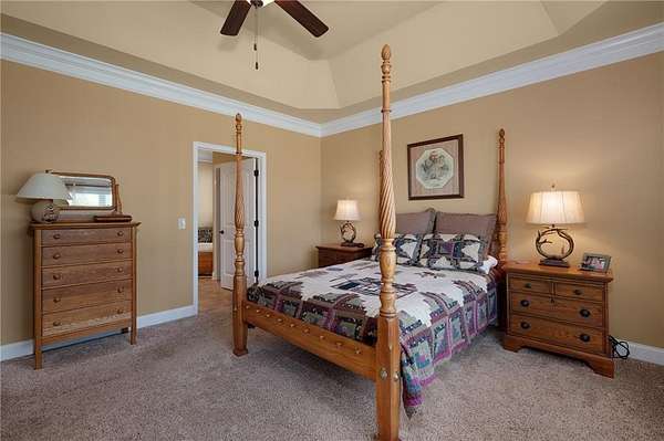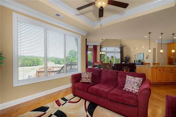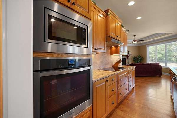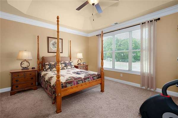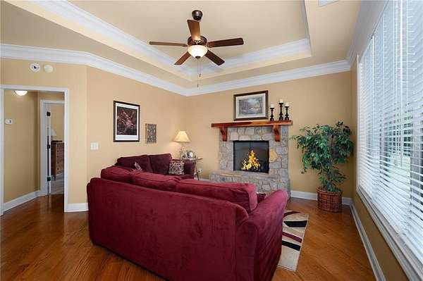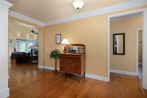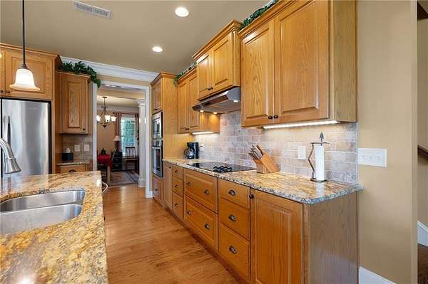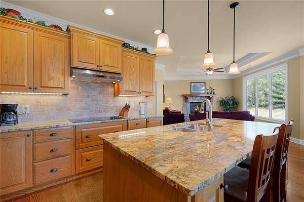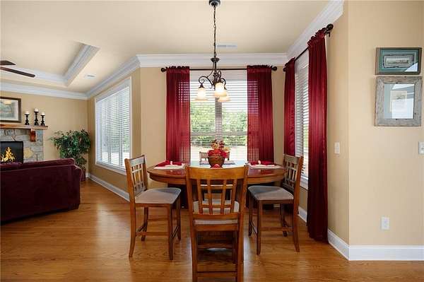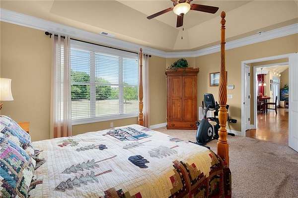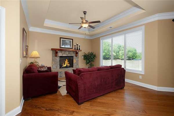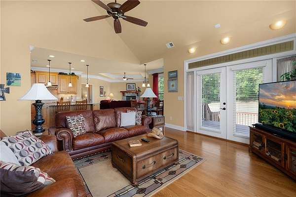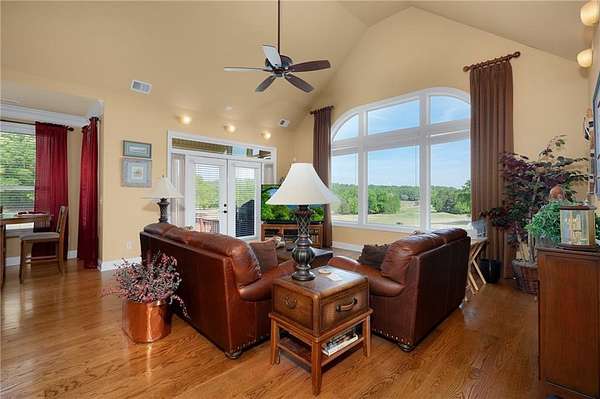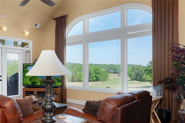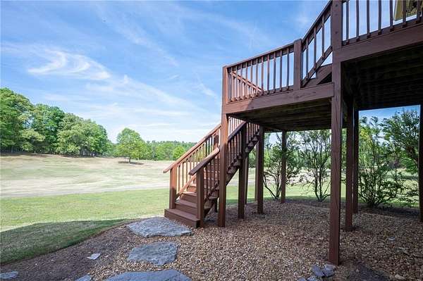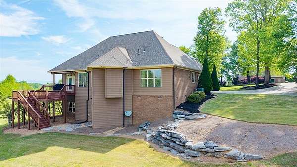 Your Private Retreat Above the 11th Green! Experience peaceful, elevated living in this first-time-offered custom home, thoughtfully designed to capture breathtaking Blue Ridge Mountain views and effortless indoor-outdoor living-all set on two beautifully manicured acres within the prestigious Fields Ferry golf course community. Stately home overlooking the 11th green, offering peaceful, secluded living in the beautiful Fields Ridge section of the sought-after Fields Ferry golf course community in Calhoun, GA. Being offered for the first time, this custom-built residence blends timeless design with serene natural surroundings. Situated on a well-manicured 2-acre lot, the property provides abundant space for a future pool, pool house, or even an ADU (Accessory Dwelling Unit)-tailored to fit your lifestyle needs. Enjoy breathtaking, unobstructed views of the Blue Ridge Mountains from the expansive picture window in the living room-an ever-changing backdrop that elevates everyday living. A spacious foyer welcomes you inside, flanked by a separate formal dining room perfect for hosting gatherings. The well-appointed kitchen features granite countertops, tile backsplash, electric cooktop and oven, under-cabinet lighting, recessed lighting, and an abundance of beautiful solid cabinetry. A large pantry and nearby laundry room add convenience, while the breakfast bar and breakfast area provide ideal spaces for casual dining. The formal living room opens to a covered deck overlooking the golf course-perfect for relaxing or entertaining-complete with a power awning that extends and retracts at the push of a button, offering effortless shade and comfort. A cozy sitting room with a gas log stone fireplace provides an inviting retreat. The primary ensuite is a true sanctuary, featuring a tray ceiling, a large walk-in closet, and a spa-like bathroom complete with tiled flooring, double vanities, soaking tub, private water closet, and a spacious tiled shower. Designed with a desirable split floor plan, two guest bedrooms and a full bath are located on the opposite side of the home for added privacy. Upstairs, you'll find an additional guest bedroom, full bath, closet, and generous attic storage. An additional 1,400 square feet of basement space is already studded and ready to be finished-offering incredible potential for expanded living, entertaining, or multi-generational use. The basement also includes a designated garage area with its own garage door, along with a separate exterior door providing direct access to the backyard. Additional highlights include 9-foot ceilings throughout, hardwood flooring in all main living areas, carpeted bedrooms, and a natural gas tankless water heater for endless hot water. The roof was replaced just three years ago. Yearly Sentricon Bait System installed and transferable. Professionally installed security system for peace of mind. Meticulously maintained, this exceptional property offers the perfect blend of privacy, elegance, and scenic beauty-an ideal retreat for those seeking refined living in a premier golf course community.