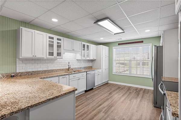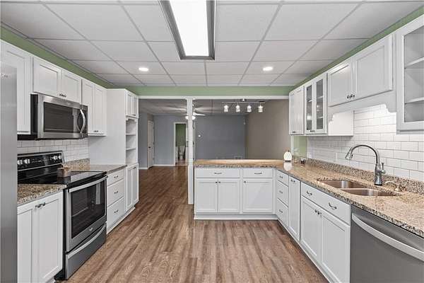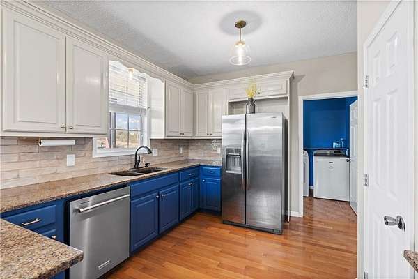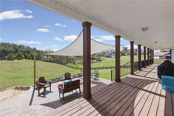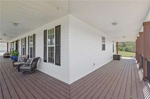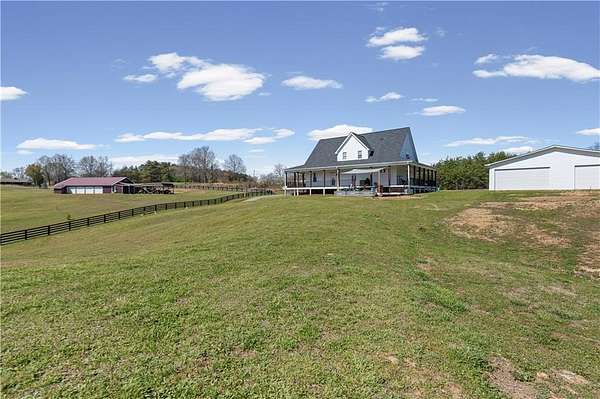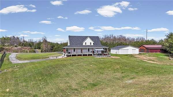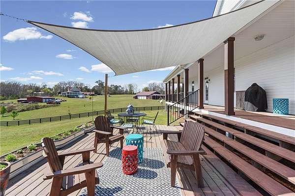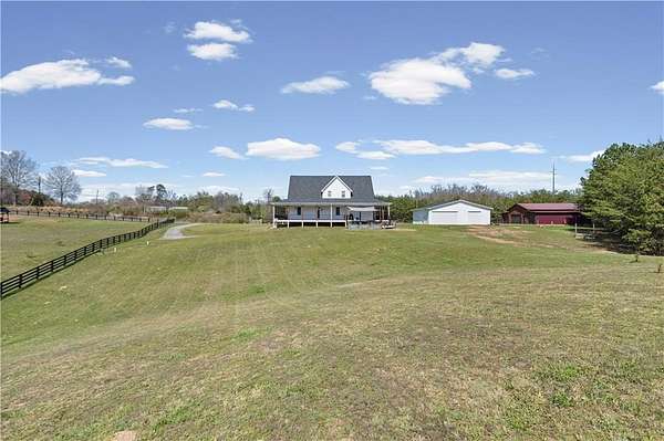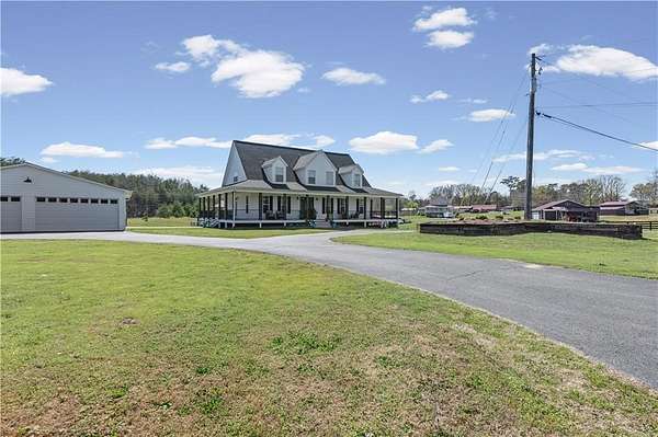Welcome home to 148 Henry Mack Hill Road-where timeless farmhouse charm meets modern comfort on approximately 2.07 +/- picturesque acres in the peaceful countryside of Rydal, GA. From the moment you arrive, you'll fall in love with the inviting wraparound porch-perfect for rocking chairs, morning coffee, and enjoying serene country views. The curb appeal sets the tone for what awaits inside. Step through the front door into a welcoming foyer featuring a staircase to the upper level and a spacious private office with a closet-ideal for working from home, a playroom, or even a guest space. As you move down the main hallway, you're greeted by a light-filled living room with abundant natural light, creating a warm and inviting atmosphere. A convenient half bath is located just off the living area for guests. Flowing seamlessly from the living room is the dining area, offering beautiful wood-accented walls that add character and charm while overlooking the kitchen-perfect for both everyday living and entertaining. The kitchen is designed with both style and function in mind, featuring solid surface countertops, a tile backsplash, stainless steel appliances, ample cabinetry, and a pantry for additional storage. Just off the kitchen, the laundry room provides added convenience with a utility sink, cabinetry, and extra storage space. The main-level primary suite offers a true retreat with private access to the wraparound deck-perfect for stepping out to enjoy quiet mornings or unwind in the evenings. The completely renovated en-suite bathroom features a double vanity, elegant tilework, wainscoting, a beautifully tiled subway shower, and a spacious walk-in closet. Upstairs, you'll find two generously sized bedrooms, each with ceiling fans and closets, along with a versatile loft area that can serve as a second living space, media room, or play area. The oversized secondary bathroom is thoughtfully designed with a double vanity, solid surface countertops, a linen closet, a dedicated "get ready" vanity space with a large mirror, and a tub/shower combination. The fully finished basement expands your living options with its own private entrance-making it ideal for multi-generational living, guests, or potential rental income. This level includes durable LVP flooring, a spacious living room, a full kitchen with white cabinetry, solid surface countertops, and stainless steel appliances, as well as a bedroom and full bathroom with a vanity and shower. Step outside and enjoy the expansive deck overlooking your private backyard-perfect for entertaining, grilling, or simply enjoying the peaceful surroundings. The property is equipped for both lifestyle and functionality with a 4-car detached garage and a separate barn/workshop-ideal for hobbies, storage, or business use. A paved driveway leads to these structures, while an additional gravel driveway provides direct access to the basement entrance. With plenty of space to spread out, room for outdoor activities, and all the charm of country living-this property truly offers the perfect farmhouse lifestyle while still being conveniently located. Don't miss the opportunity to make this one-of-a-kind property your own!