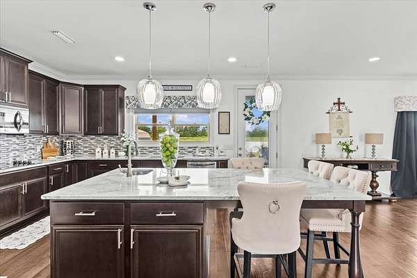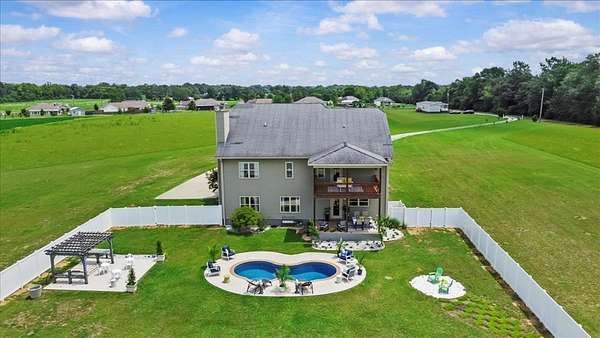 This custom built estate in the sought after Wicksburg School District offers 4884 square feet of thoughtfully designed living space on more than seven acres, with the option to purchase additional land, making this a rare opportunity. Crafted with quality and detail, the home features crown molding, granite countertops throughout, two fireplaces, and oversized bedrooms, closets, and living areas. The gourmet kitchen is ideal for cooking and entertaining and includes a double oven, two sinks, granite counters, and a large walk in pantry. The luxury primary suite provides a peaceful retreat with a sitting area, fireplace, and private access to the back deck overlooking the property. The spa like ensuite offers split vanities, a spacious walk in shower, and an oversized walk in closet. All additional bedrooms also feature walk in closets for abundant storage. Step outside to a private backyard oasis with a saltwater pool, firepit, covered cabana area, garden space, and a new white vinyl privacy fence. Both front and back porches were recently finished with epoxy for durability and a clean updated look, and a sprinkler system services the front yard. Enjoy quiet country living just fifteen minutes from Flowers Hospital and Fort Rucker and conveniently positioned between Dothan and Enterprise, with Panama City and the Gulf Coast only one hour away. This is a rare chance to own a spacious custom estate in Wicksburg Alabama.