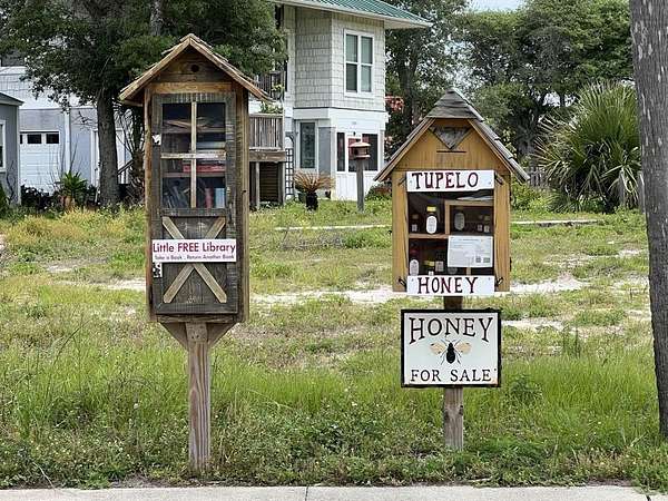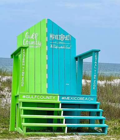 In Mexico Beach, turn onto 15th Street, go across the bridge, take first left, then first left into subdivision. Follow road to 2nd left. Look for sign on right at end.