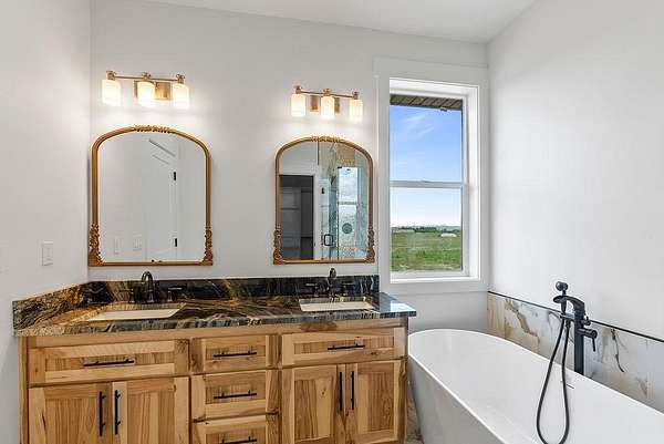 Brand new luxury on plenty of land. Opportunities like this do not come up often. This brand new, single-level home offers over 1,800 square feet of thoughtfully designed, modern living space, all set on just over 6 flat, usable acres. Inside, you'll find 3 spacious and stylishly designed bedrooms and 2 stunning bathrooms, including a luxurious master suite with a freestanding soaking tub and a glass walk-in shower featuring custom tilework and dual sinks. The walk-in closet is spacious and bright. The thought and design that went into this home is evident in the impressive details throughout. The home is filled with natural light and boasts tall ceilings, a stylish gas fireplace, and an open layout that feels both elegant and comfortable. There's also a large bonus room--perfect as a second living area, a home office, or a spacious family room. The open concept design provides plenty of space for entertaining and everyone will be impressed by the modern opulence displayed throughout. The kitchen is a showstopper with double-edge granite countertops and a layout made for entertaining. The builder really pulled out all of the stops when selecting the finishes for this luxurious home. All of the high-end appliances are brand new with a motion activated water feature. The oversized, custom cabinets provide plenty of storage space. The finished 3-car garage is fully insulated, drywalled, textured, and painted, and it's even plumbed for a gas heater. Step outside to a beautiful patio that's plumbed for your gas grill or an outdoor fireplace. Surrounded by peaceful nature and just under a mile from the world-famous Snake River, this property offers the perfect blend of modern luxury and extravagance while maintaining the rural feel. ( Sellers will sell property fully furnished for a extra 15k)