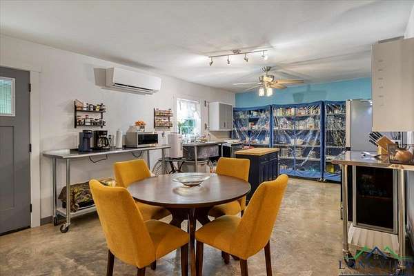 This charming and well-maintained 2-bedroom, 1-bath home sits on a spacious lot that blends open cleared space with shady, wooded privacy--perfect whether you're downsizing or investing in a weekend getaway. Step inside and you'll find an industrial-style kitchen, open and functional, complete with a range, dishwasher, refrigerator, washer & dryer, and dehumidifier-all included in the sale. The cozy living area comes furnished with a sofa, end tables, and a coffee table, making this home move-in ready from day one. A huge bonus is the sealed concrete floors, making maintenance a breeze. Outdoor living is a breeze with a fan on the covered patio, grill, fire pit, and a covered dog run with artificial turf--ideal for pet lovers. The generator (serviced in mid-June), tankless water heater, and propane tank (owned, not leased) offer peace of mind and modern efficiency. The 12ft X 20Ft shed has a built in work bench and electricity, perfect for any projects and storage. Located in the private, gated 4D Country Estates, this peaceful and private community is just minutes from the heart of Winnsboro but feels like a world of its own. You will also have access to a couple of lakes, with the largest being stocked for fishing. Come see what this property has to offer!