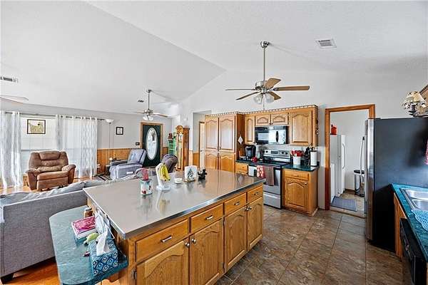 Escape to the peace and privacy of true country living on nearly 10 acres at 148 Riverwood Drive. This charming 3-bedroom, 2-bath home offers 1,560 square feet of comfortable, open-concept living, perfect for gathering and entertaining. The kitchen is the heart of the home, featuring a large island and flowing seamlessly into the living space. The primary suite includes a walk-in closet, while a dedicated utility room adds everyday convenience. Outside, enjoy wide-open space with a fenced backyard, detached carport, and two storage areas--ideal for hobbies, equipment, or animals. A rare opportunity to own acreage, privacy, and freedom, all in one place.