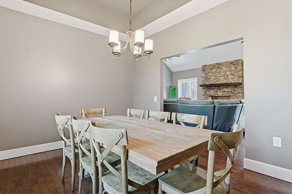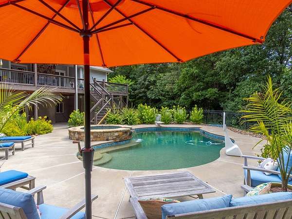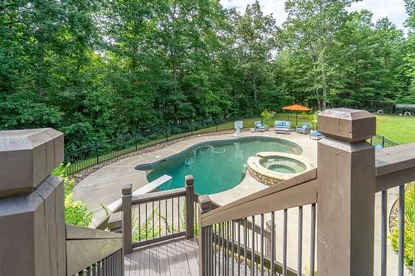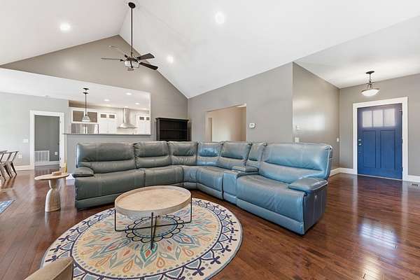 Located in the highly sought-after Stone Creek Crossing neighborhood, this beautiful 4BR/3.5BA home sits on 2.06 acres & offers a large, gently laying yard, ample parking, & a private backyard complete with a pool—perfect for relaxing or entertaining. An attached 2-car garage provides convenience & additional storage. Inside, you'll find a spacious living room anchored by a stunning stone gas log fireplace & enhanced by vaulted ceilings that create an open, airy feel. The kitchen features stainless steel appliances, abundant counter space, & ample storage, along with both a breakfast area & formal dining room for added versatility. The primary suite is conveniently located on the main level & offers vaulted ceilings, a large walk-in closet, & an en-suite bath with a soaking tub & separate walk-in shower. The split-bedroom floor plan provides three additional bedrooms & a full bath on the opposite side of the home. Upstairs, a bonus room with a half bath adds flexible living space, ideal for a home office, playroom, or guest overflow. The full basement includes a versatile game room & additional storage. Easy paved road access & only 10 minutes from Downtown Franklin!