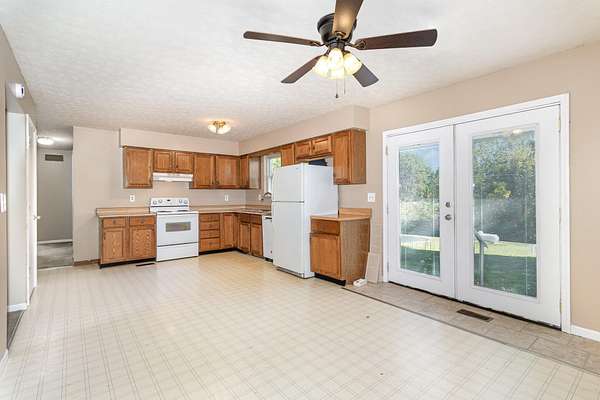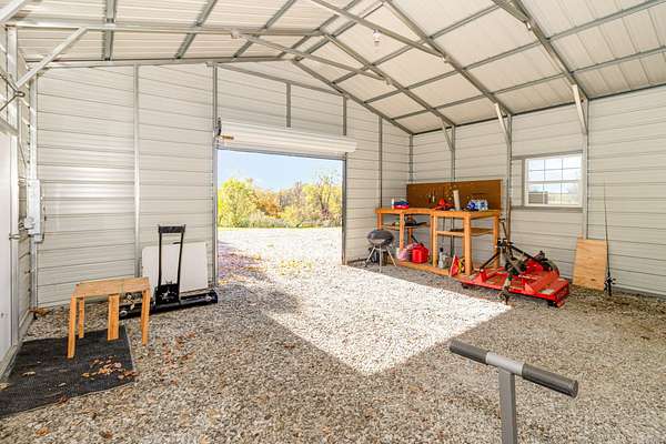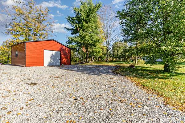 Discover endless possibilities with this ranch home nestled on over 16 acres just minutes from the Crittenden exit! This 3-bedroom, 2-bath property offers the perfect blend of privacy, potential, and convenience. The home features a partially finished basement and is ready for your personal touch to make it shine. A 24x21 metal building is already equipped with 30-amp and 50-amp electric, water, and septic hookup-ideal for a workshop, RV, or guest setup. The property backs up to Eagle Creek Golf Course and includes a cleared potential building site, plus wooded acreage with trails and a creek-perfect for exploring, hunting, or simply enjoying the outdoors. Whether you're seeking a serene homestead, weekend retreat, or land to build your dream home, this one checks all the boxes!