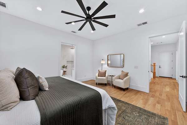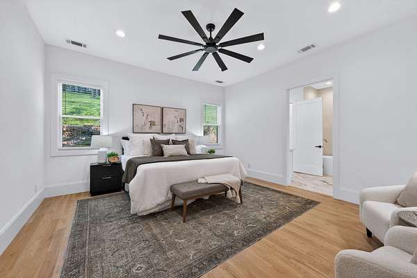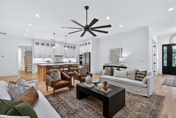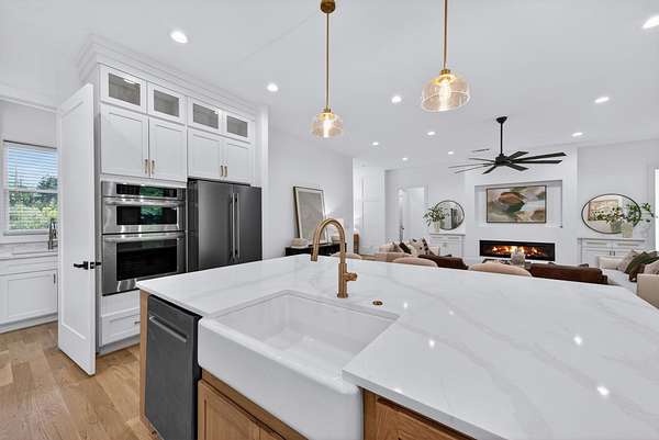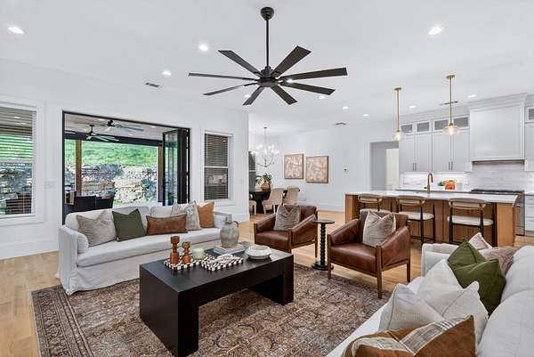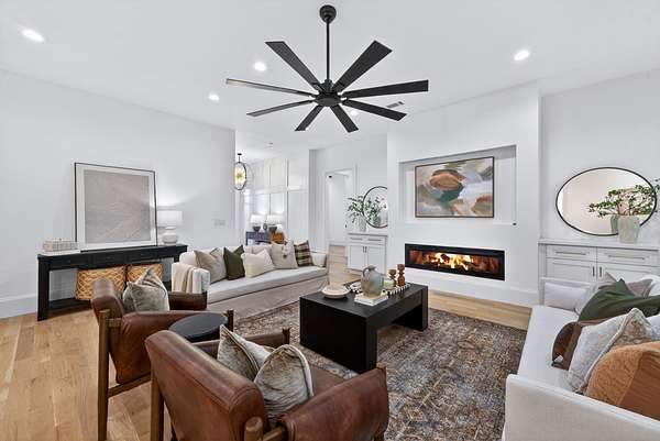 Welcome to an extraordinary custom-built home where intentional design meets elevated luxury. Privately situated on 6.8 acres, this residence was thoughtfully crafted with uncompromising attention to detail. Designed for effortless living, all four bedrooms are located on the main floor — each secondary bedroom featuring its own private ensuite bath and spacious walk-in closet. The primary suite is privately positioned on one side of the home, and conveniently connects directly to the laundry room. White oak hardwood floors extend throughout the home. The chef’s kitchen is both stunning and functional, showcasing quartz countertops, extensive cabinetry, and an oversized walk-in pantry complete with a prep sink and abundant storage. A dedicated office provides a refined work-from-home retreat, while the expansive bonus room offers flexible space for media, recreation, or guests. Step outside to a massive covered back porch, an entertainer’s dream that features a fireplace, mounted TV, and ceiling-mounted heaters for year-round enjoyment. A long, private driveway welcomes you home, leading to a four-car garage and enhancing the estate-like feel of this exceptional property.