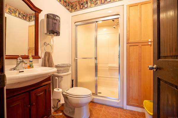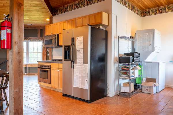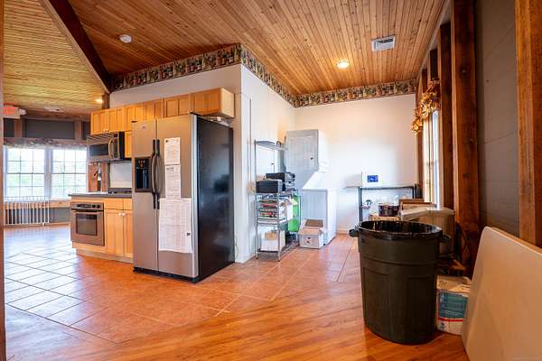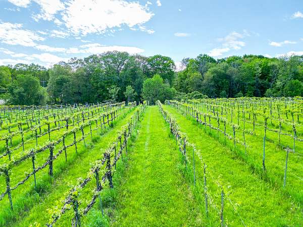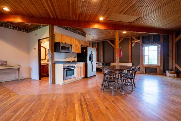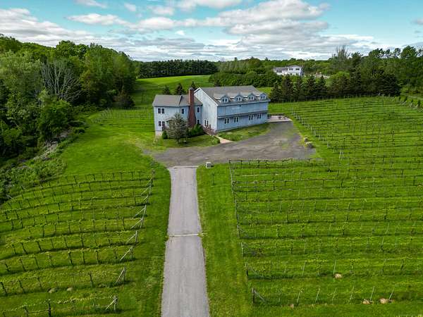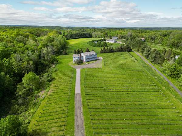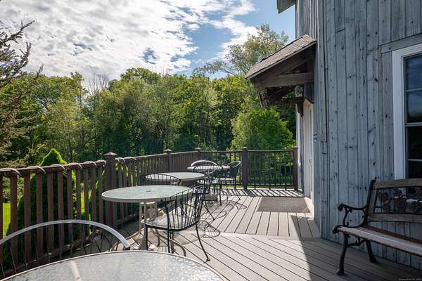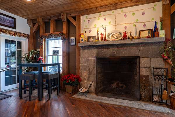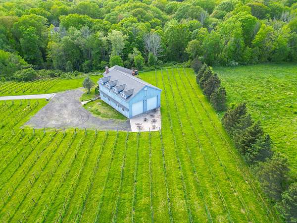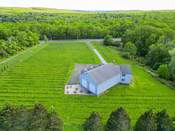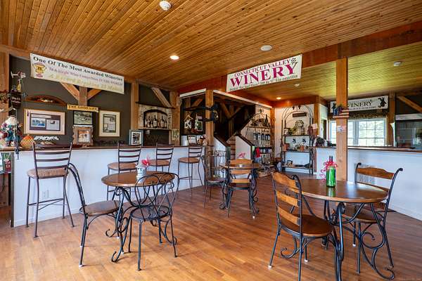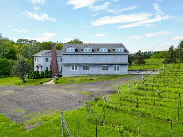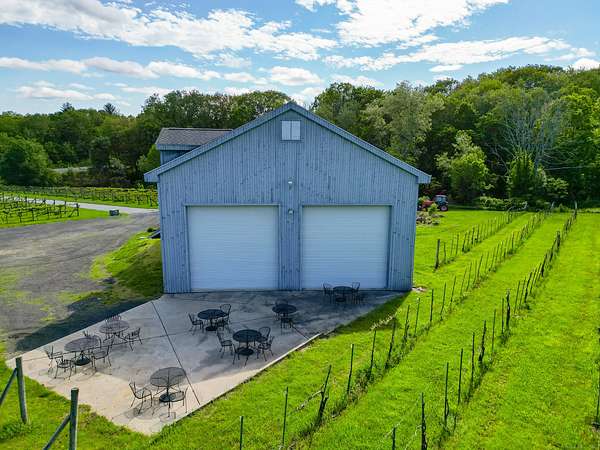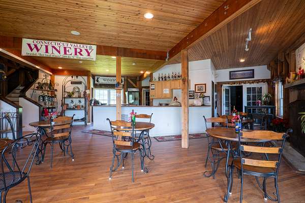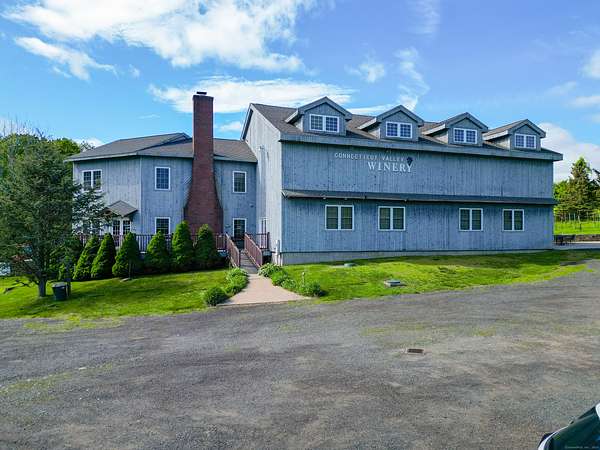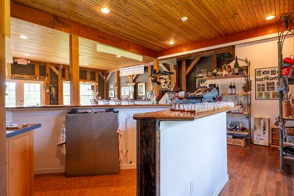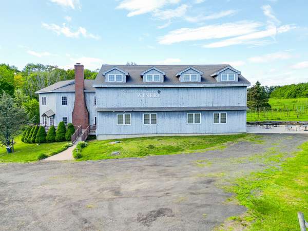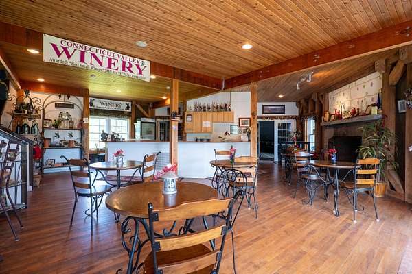 $55K Price Improvement and SELLER FINANCING POSSIBLE!!! Discover a rare gem tucked away on a stunning 4-acre vineyard in New Hartford, CT-a 4,800 sq. ft. winery estate ready to be reimagined as your dream home. Framed by mature grapevines and a charming row of Christmas trees, this property offers an enchanting blend of rustic elegance and endless possibilities. Step onto the inviting front porch, where new gray Trex decking complements the beautifully maintained exterior. As birdsong welcomes you, you'll feel transported to a serene countryside escape. Enter through the front door into the expansive great room-currently used as a tasting room-featuring rich hardwood floors, warm wood ceilings, recessed lighting, imported exposed beams, and a cozy fireplace that sets the tone for gatherings or quiet evenings. To the right, a spectacular 2,700 sq. ft. space with a soaring 32-foot cathedral ceiling awaits. Perfect for hosting unforgettable celebrations or transforming into an impressive showroom for your classic car or truck collection, this versatile room is flanked by two oversized overhead doors that open onto a generous outdoor patio-ideal for entertaining under the stars. Ascend the staircase from the great room to a light-filled studio-style upper level, complete with a full kitchen and bath. With its vaulted ceilings and elegant architectural details mirroring those below, this space offers the perfect private retreat.