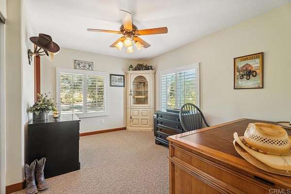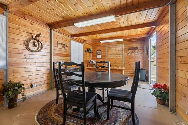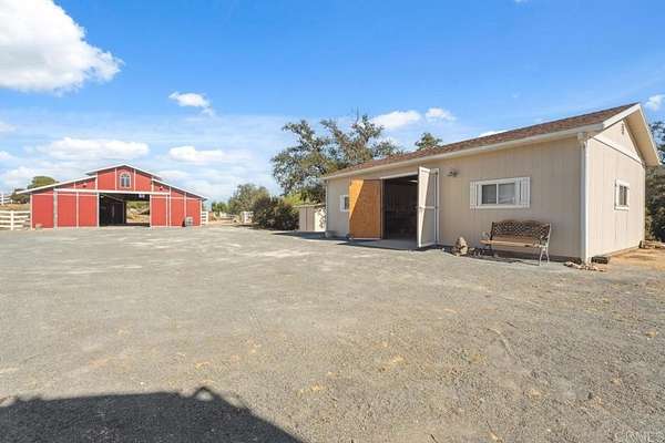Experience the ultimate in peaceful living on Weststar Ranch just 1 hour from Downtown San Diego. This stunning 2427 sq. ft. residence sits overlooking serene panoramic views on 51.3 private acres. Designed and renovated by a master cabinet builder, the property features amain residence that combines charm with modern comforts, a 2 stall barn with an office and bathroom, a shed, a 20KW Generac generator with auto transfer switch, and 3 private wells. The main well is 1200 feet deep and serves the home and some landscaping. As you drive up you are greeted with a charming stone wall exterior. Inside, a vaulted wood plank ceiling,stone fireplace in the main living area with direct access to the outdoor deck welcome you. The kitchen is well appointed with custom wood cabinets, granite countertops and stainless appliances. The island and pantry cabinets provide lots of storage and workspace for the most ambitious chef's. A spacious dining room with access to the outdoor deck is perfect forentertaining and hosting holiday parties. The spacious primary suite is flooded with natural light. Downstairs is a large laundry/mudroom and additional room that offers flexibility as a game room, gym, or bonus living space. Outdoors, enjoy the beautiful sunrise and sunset views from the outdoor deck, the quaint sitting areas and many trails that abound on theproperty perfect for horse or ATV riding or hiking. Zoned S92 general Rule W Animal Designator. Whether you're seeking privacy, self-sustainability, creating an event venue, family compound or a lifestyle retreat--this is a rare opportunity.