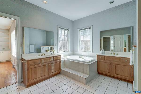 Stately Colonial in Inglecress offering 4 bedrooms, 3.5 baths and over 4,400 finished square feet plus outstanding expansion potential. Set on a picturesque 4.5+ acre lot with circular drive and mountain views, this home features generously sized rooms, hardwood floors throughout the main level, and classic architectural details. Formal living and dining rooms with custom built-ins lead to a dramatic sun room with vaulted ceiling, exposed beams and brick fireplace. The spacious kitchen includes a large island, abundant cabinetry and a sun-filled breakfast area opening to an expansive rear deck that is ideal for entertaining.The main-level primary suite provides convenient one-level living with a large bath and two walk-in closets. Upstairs bedrooms are oversized with shared and private bathrooms and a flexible space for office or guests. An unfinished walk-out basement, and walk-up attic offer significant opportunities for additional living space, recreation or guest suites. An existing in-ground pool footprint presents the chance to restore or reimagine a private backyard retreat. Located just 3 miles to Charlottesville shopping and dining, this Inglecress home offers space, location and value in Albemarle County.
