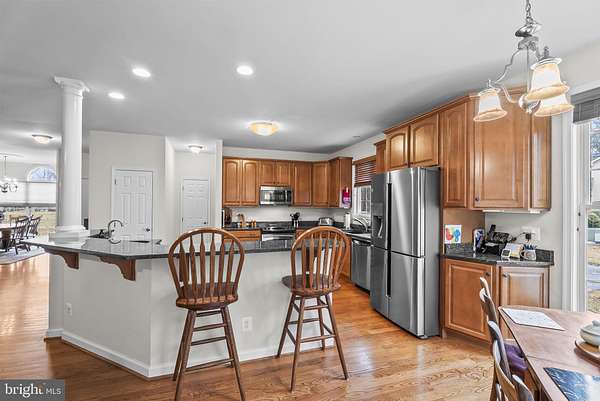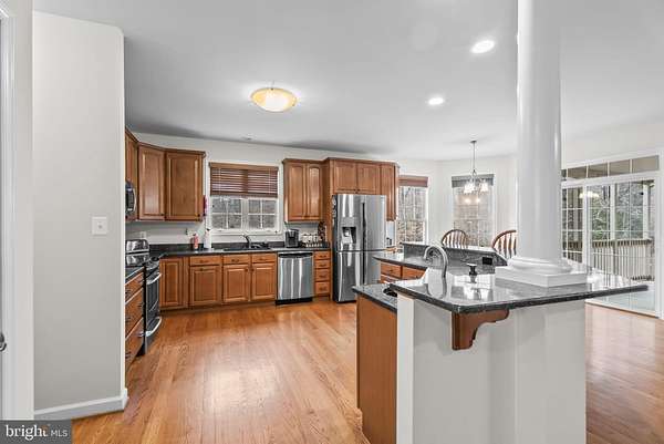 Large all-brick multigenerational home on over 3 private wooded acres with lake access in the sought-after Lake Jameson community. This freshly painted custom-built home (2005) offers over 6,905 square feet, 5 bedrooms, 5.5 bathrooms, and a three-car garage. Designed with flexibility and space in mind, this home features a bright, open floor plan with a dramatic den showcasing 19-foot ceilings, a home office, formal dining room, gas fireplace, and walk-out access to a screened-in porch and deck. The spacious kitchen is ideal for entertaining and everyday living, offering a large walk-in pantry, oversized island, two sinks, coffee/wine bar, and stainless steel appliances. A large mudroom with washer/dryer and private side entrance adds convenience. A standout feature is the main-level handicap-accessible bedroom and full bathroom, providing an ideal setup for multigenerational living, in-law accommodations, aging in place, or long-term guests. The upper level offers four bedrooms and a versatile loft area. The expansive primary suite features tray ceilings, a spa-like bathroom with oversized dual-head shower, and an exceptionally large walk-in closet rarely found in homes of this size. The finished walk-out basement provides outstanding additional living space, including large recreation areas, private multimedia room, full bathroom, flex room (currently used as a 6th bedroom), kitchenette, and extensive storage. Enjoy the privacy of over 3 wooded acres with abundant outdoor space, including a backyard fire pit - perfect for relaxing or entertaining. Additional highlights include a backup generator for peace of mind. Lake Jameson is a private, pet-friendly lake community known for its wooded lake, scenic trails, and natural surroundings. Convenient commuter location with access to Routes 5, 301, and 231. Ideally positioned for military relocation with proximity to Joint Base Andrews, Pax River Naval Air Station, and Coast Guard Headquarters. Homes in Lake Jameson are rarely available. Schedule your showing today.