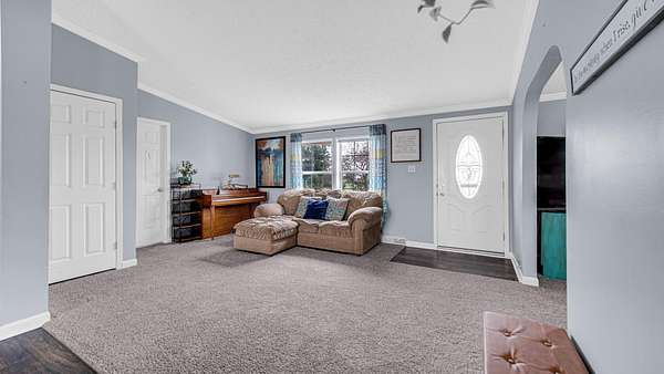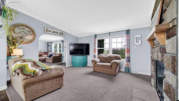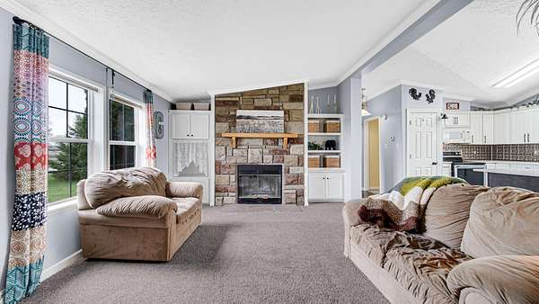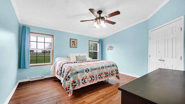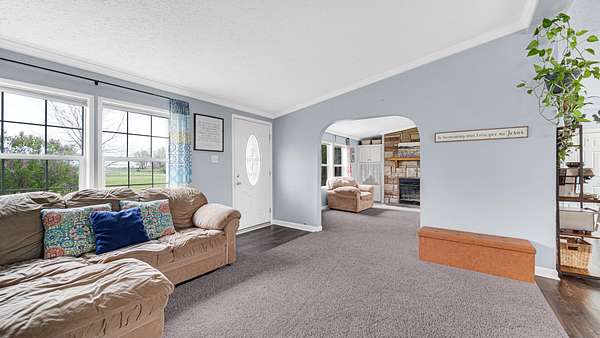 Experience refined country living on nearly 10 acres in sought-after Hanover Township offering convenient access to Illinois. This beautifully maintained 3-bedroom, 2.5-bath sprawling ranch constructed w/ quality 2x6 construction blends timeless design w/modern comforts in a serene setting. Step inside to a bright, airy open-concept layout enhanced by tasteful decor & thoughtful design throughout. The inviting living room features a stunning stone fireplace creating a warm & elegant focal point. A separate formal living room or bonus space showcases picturesque views of the front acreage offering versatility for entertaining, relaxing, or working from home. The recently updated kitchen truly serves as the heart of the home, boasting a massive center island, quartz countertops, vaulted ceiling, pantry, coffee bar, & newer appliances. The spacious dining area w/ sliding glass doors leads to an oversized rear deck creating seamless indoor-outdoor living--perfect for entertaining or enjoying countryside views. Designed with a desirable split floor plan, the luxurious primary suite offers a private retreat featuring a large walk-in closet w/ built-ins, dbl vanity, & a heated jetted whirlpool tub for ultimate relaxation. Two additional beds & a full bath are thoughtfully situated on the opposite side of the home, providing comfort & privacy for family or guests. Outdoors the property continues to impress. Equestrian enthusiasts will appreciate the impressive 30x40 barn complete w/ water, electric, tack room, 2 stalls (room for a 3rd), & turnout pens w/ electric fencing. The expansive acreage offers endless possibilities for recreation, horses, or future expansion. A 2.5-car det garage provides additional storage & workspace. Bonus: Included is a subdivided and platted 2.12-acre parcel located at the NW corner of the property--an exceptional added value & rare opportunity. This remarkable property is truly one of kind & a rare find. [See directions: GPS mapping issues]