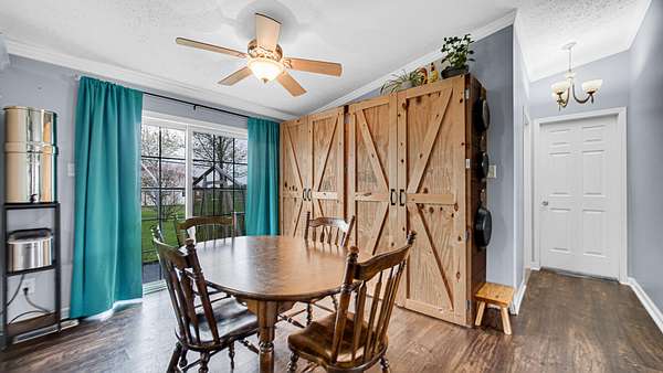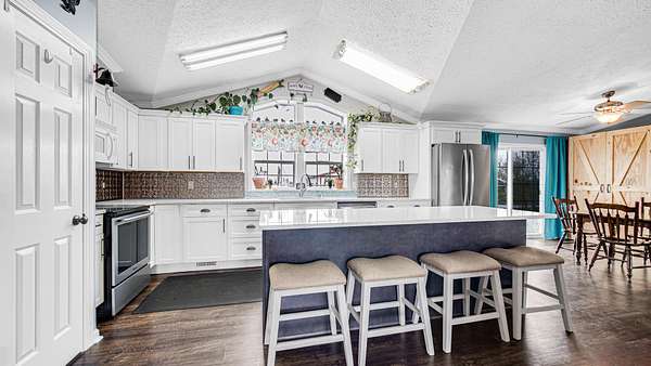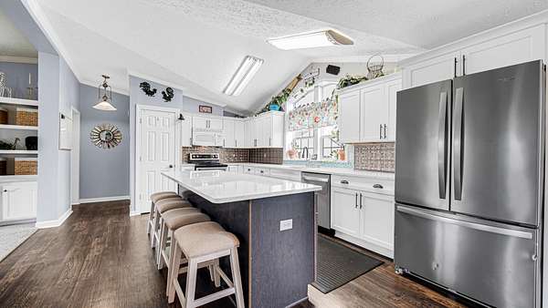 - Cathedral Ceiling(s), Ceiling Fan(s), Country Kitchen, Double Vanity, Eat-In Kitchen, High Ceilings, Kitchen Island, Open Floorplan, Pantry, Stone Counters, Vaulted Ceiling(s), Walk-In Closet(s)