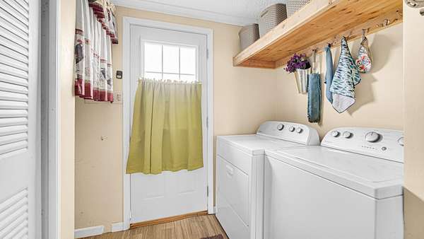 - Dishwasher, Disposal, Dryer, Electric Range, Microwave, Refrigerator, Stainless Steel Appliance(s), Washer, Water Softener Owned