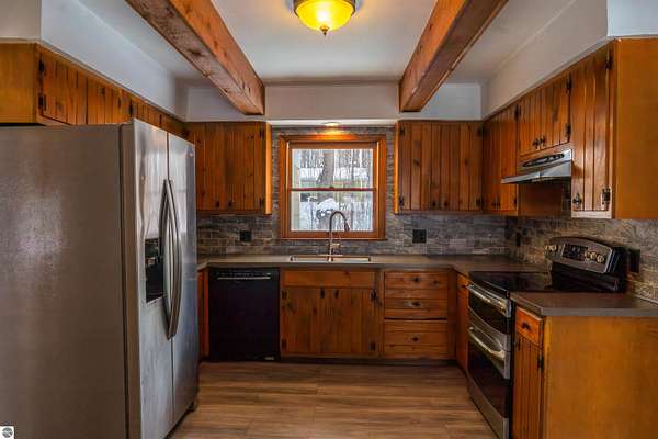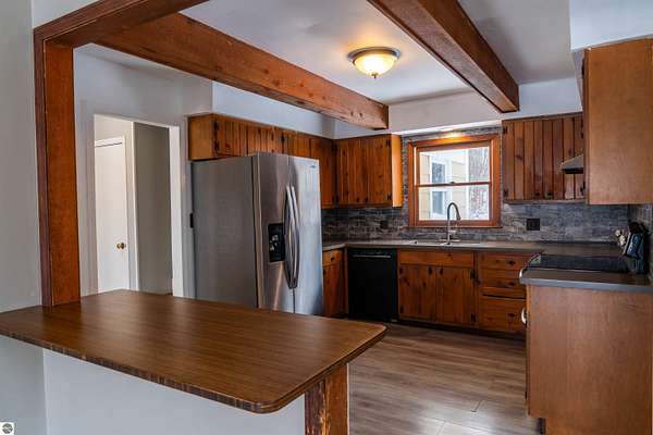 This beautiful home offers breathtaking seasonal views, with a well-known color tour route right outside your door. Inside, you'll find a thought fully designed floor plan ideal for family gatherings and entertaining, featuring tall ceilings accented by striking wood beams, abundant natural light from numerous windows, and elegant French doors that open to a wrap-around deck--perfect for cookouts, relaxing evenings, and making memories. The home offers generously sized bedrooms, 2.5 baths, and multiple heating options for year-round comfort, including propane, electric, and a cozy wood stove/fireplace. The property is dotted with maple trees and surrounded by nature, where deer, foxes, and turkeys are frequent visitors. Located just minutes from Center Lake, enjoy swimming, kayaking, fishing, and lakeside family fun, all while being only 10 minutes from Cadillac and 10 minutes from Tustin--offering the best of peaceful country living with convenient access to town. This property is the perfect blend of comfort, character, and Northern Michigan charm, with endless potential for entertaining and everyday enjoyment.