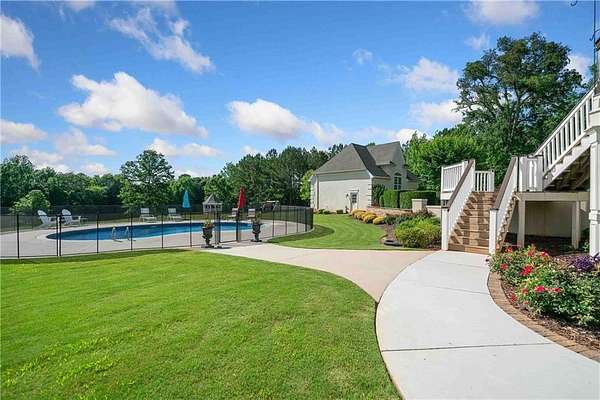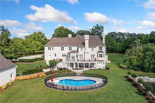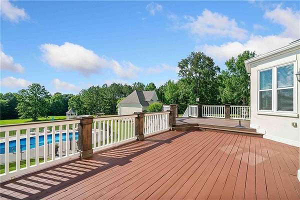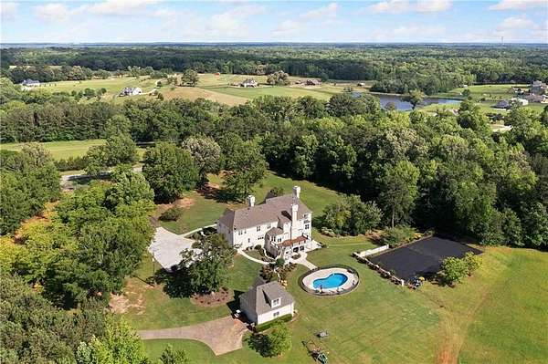 BACK ON MARKET DUE TO NO FAULT OF THE SELLER OR PROPERTY. This meticulously maintained Fayette County estate sits on more than 11 picturesque acres with a pecan orchard, fenced in-ground pool, newly repaved basketball and pickleball courts, oversized 3-car garage with custom cabinetry, detached workshop/garage and a beautifully updated home. The soaring ceilings set a luxurious tone the second you enter the foyer. Entertainers will love the floor plan with a kitchen that opens up to a family room and has easy access to the spacious deck that looks out over the pool and expansive back pasture. The master suite is upstairs and comes complete with a sitting room, coffee bar area, and walk-in closet. In addition to the 5 guest rooms upstairs, the basement has two bedrooms and two bathrooms in addition to the second kitchen, making it a great space for in-laws or just extra privacy for your guests. Country living doesn't have to be without luxury and the highest level of functionality. This is one of Fayette County's must-see properties!