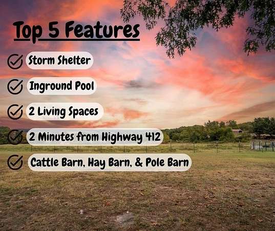 Est $3,032/moThe perfect balance of farm life mixed with ease and convenience of being located 2 minutes from Highway 412. You're close to Fayetteville, Springdale, and Huntsville. The house sits on over 21 acres of land, and is the perfect design for multi-family living. Best of all the property features a storm shelter, barns, and a shop which make it a dream. The gated in ground pool will have you wishing you could swim year round. Be sure to see all that this property has to offer with the video and 3D Matterport tour.