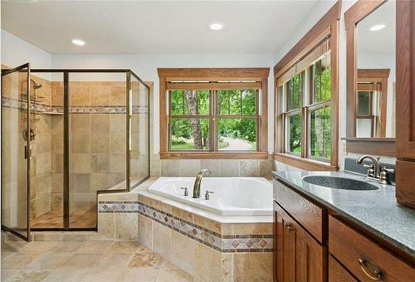 Exquisite former model home by Bruce Lenzen, nestled on nearly 7 private wooded acres in the heart of Afton. Recently refreshed interior and exterior paint elevate the timeless craftsmanship throughout.