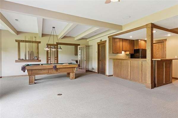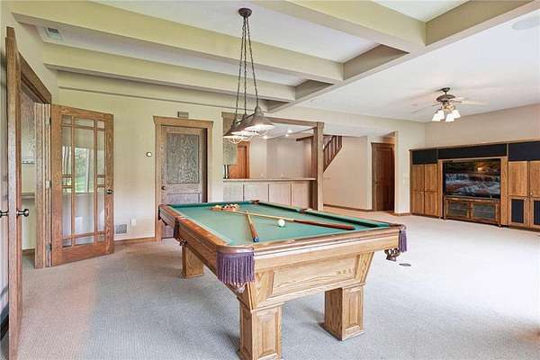 The walkout lower level is an entertainer's dream with heated floors, gas fireplace, billiard room, wet bar, media-ready family room, two versatile flex rooms, tiled bath, and generous storage.