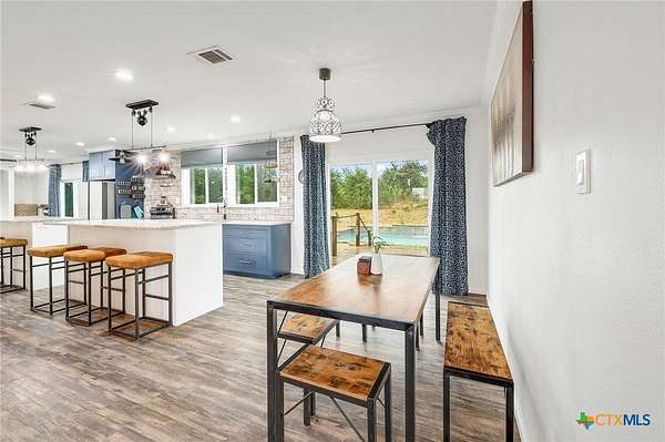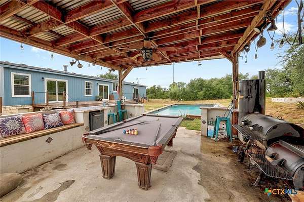 Secluded 10-Acre Estate with Renovated 4-Bed Home, Pool, and Shop. Discover your private, unrestricted sanctuary just outside of Leander. This exceptional 10.02-acre property offers the rare combination of breathtaking, forever-protected panoramic views of the Balcones Canyonlands, total seclusion, and unparalleled utility. Featuring a recently remodeled 2,280 sq ft home and a 1,200 sq ft metal shop, it is the perfect canvas for the entrepreneur, hobbyist, or anyone seeking a tranquil Hill Country lifestyle without HOA restrictions. The seller is offering a money to buy down your interest rate. Secure a lower monthly payment! House Step into a beautifully remodeled 4-bedroom home where modern finishes meet functional design. The open-concept living area flows seamlessly into the dining room and kitchen, creating the ideal space for entertaining. - Gourmet Kitchen: Designed for the serious cook, the kitchen boasts two large islands and extensive counter space, offering both utility. - Owner's Retreat: The private main suite features a bonus dedicated office/flex space, a walk-in closet, and a sliding glass door providing direct access to the deck and pool area. - Flexible Layout: A clever split-bedroom layout positions the three secondary bedrooms and a second living area on the opposite side of the home, providing privacy and versatility. - Outdoor Living: Relax and recharge on the back deck with an in-ground pool and gazebo, or enjoy the views from the front deck. Shop Building The 1,200 sq ft metal shop is built on a concrete slab and features four convenient roll-up doors. Currently equipped with a car lift (can be removed), this space is an ideal setup for a business, mechanic, RV/boat storage, or serious hobbyist. Land Encompassing 10.02 acres, the sloping topography maximizes the unrivaled Hill Country views. Blanketed with Live Oaks and cedar, the acreage feels expansive and provides a deeply secluded, tranquil environment.
