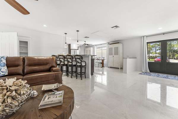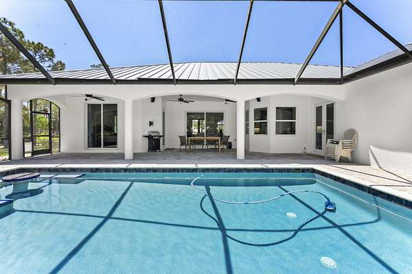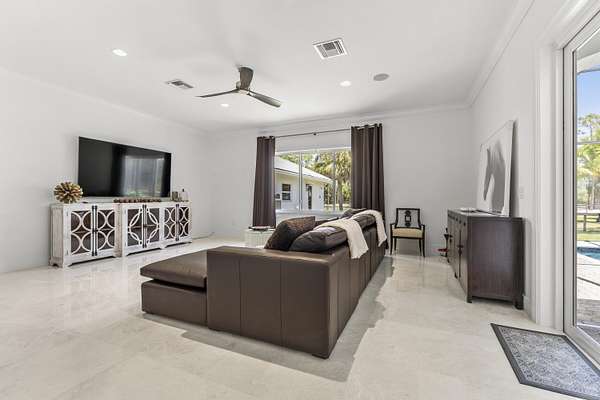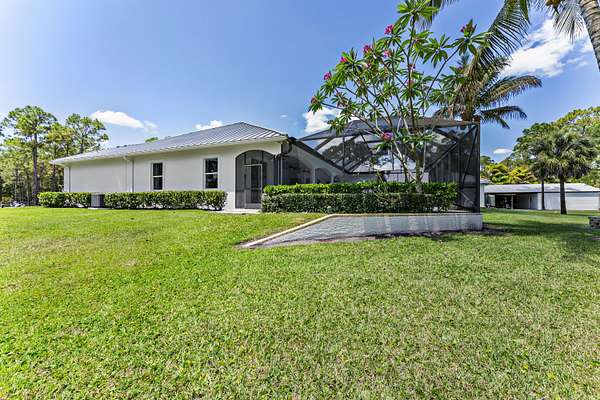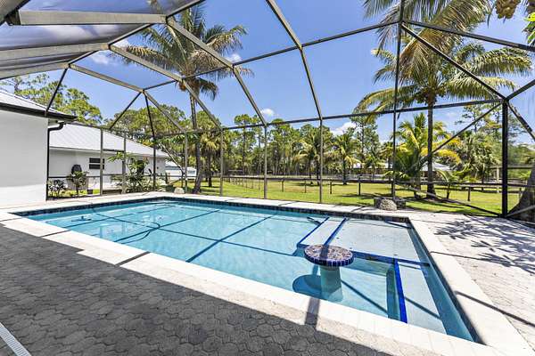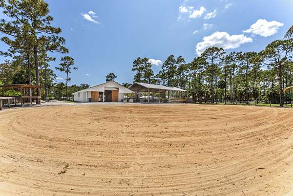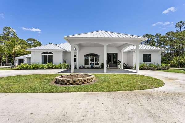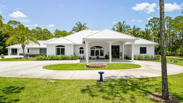A masterclass in modern elegance and equestrian living, this completely renovated Caloosa estate blends minimalist design with exceptional function across 5 private, fully fenced, and irrigated acres. Offering 5 bedrooms, 5 bathrooms, and nearly 5,000 square feet of refined living space, every inch of this residence has been curated for effortless luxury and timeless sophistication. The residence features smooth walls and ceilings, impact glass throughout, and an abundance of natural light that highlights its modern, clean aesthetic. The designer kitchen is the heart of the home, showcasing elegant quartzite counters and backsplash, a large island, and Sub Zero refrigerator. A major highlight is the two bedroom, two bath guest house - a complete private residence with its own kitchen. The guest house also has a washer/dryer, all with the same high end finishes, and cabana bath. For equestrian enthusiasts, the property is truly exceptional. It includes two barns with six stalls, a riding arena, and manicured paddocks with a full drainage system, designed for optimal care and convenience. The barn is equipped with a fly control system, washer and dryer in the tack room, and thoughtfully planned ventilation and storage. A covered truck and trailer parking area, air-conditioned workshop building, and separate gated entry make this property as functional as it is beautiful. Recent updates include two new A/C units, new insulation and ducts throughout the main house and garage, a new drain field, water filtration system, and whole-property irrigation. New insulation and ducts throughout the main home and garage. This is acreage living without compromise, where contemporary design meets serene equestrian lifestyle. Located within the prestigious Caloosa community, residents enjoy access to over 30 miles of interior riding trails and a 32-acre horse park featuring a dressage arena, jump course, and cross-country area. Additional amenities include tennis and pickleball courts, a children's playground, basketball courts, and a private park with meeting facilities, all exclusive to Caloosa residents and their guests. Caloosa is a one-of-a-kind equestrian enclave with approximately 350 five-acre home sites, ideally positioned just 15 minutes from the Florida Turnpike, I-95, and The Gardens Mall, and 25 minutes from Downtown West Palm Beach and Palm Beach International Airport. It's a perfect blend of privacy, prestige, and accessibility,making it one of Palm Beach County's most coveted equestrian communities. With its rare combination of sleek modern design, world-class equestrian amenities, and thoughtful upgrades throughout, 14819 Broken Arrow Place offers an unparalleled opportunity to experience the best of Palm Beach Gardens' luxury acreage living. THIS IS THE NEW WELLINGTON - COME & ENJOY THE SPACE.