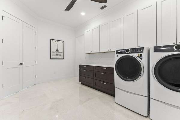 - Cabana Bath, Central Vacuum, High Ceilings, Kitchen Island, Pantry, Pull Down Stairs, Split Bedroom Layout, Walk-In Closet(s)