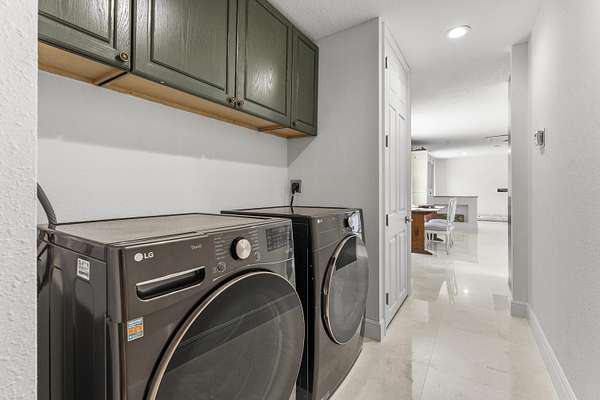 - Dishwasher, Disposal, Dryer, Electric Range, Electric Water Heater, Microwave, Refrigerator, Washer, Water Heater