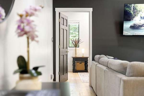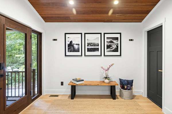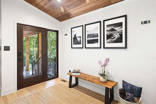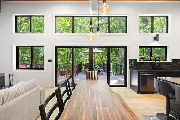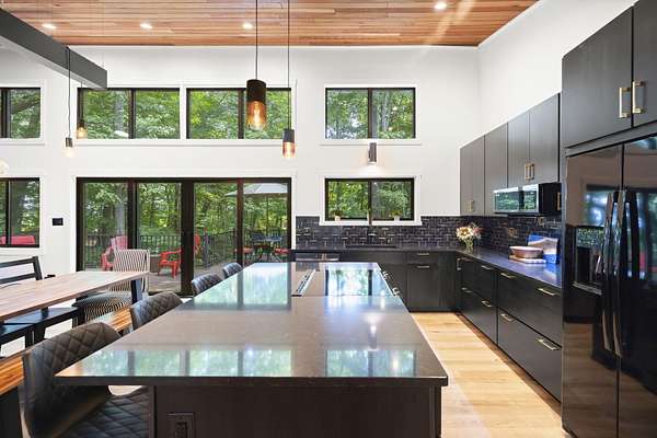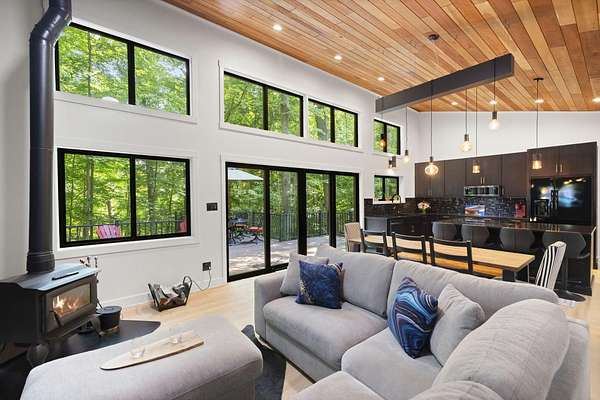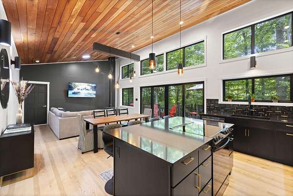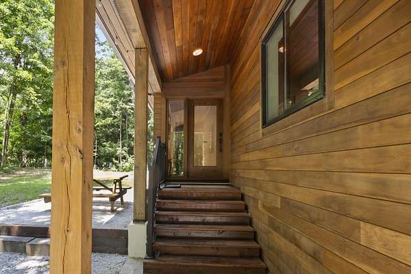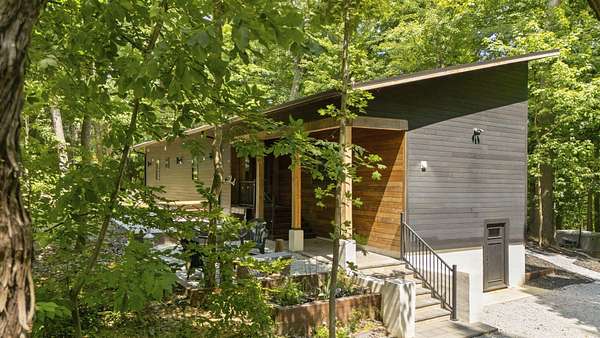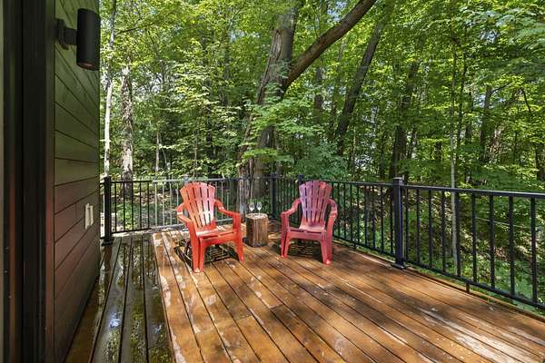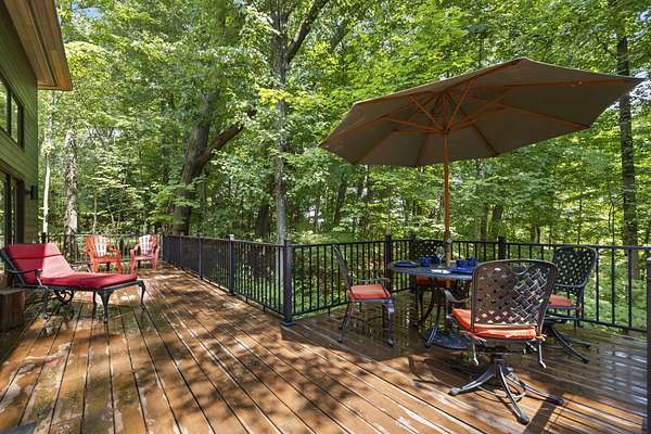 Set over 350 feet from the road down a winding drive is this gorgeous 3 years young, custom built home set on a private ravine in SW Michigan's wine country. Custom built with locally grown and milled lumber; fitted with custom finishes, solid hardwood floors, vaulted ceilings, and walls of glass. Featuring a spacious primary suite, large kitchen, open living/dining floorplan, main floor laundry; all with stunning views. Outside it's nothing but Big Deck Energy here with enough space to entertain a crowd! Soak in the hot-tub, build a fire in the firepit, all while soaking in the centuries old forested setting. Short term rentals are not allowed, 30 day minimum on rentals.