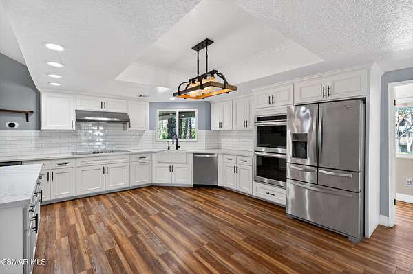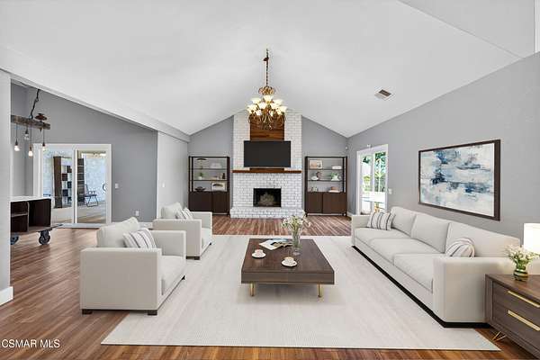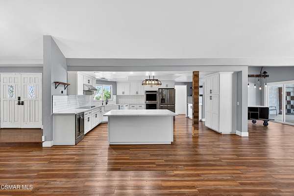 Welcome to this stunning 5-bedroom, 3-bath home in the highly desirable Woodcrest area! Situated on a sprawling, flat 1.8-acre lot, this exceptional property offers space, functionality, and endless possibilities. Beautifully updated kitchen featuring quartz countertops, a large farmhouse sink, ample cabinetry, and premium stainless steel appliances, including a wine fridge,KitchenAid double oven, dishwasher, and a Viking six-burner gourmet cooktop. Enjoy the built-in coffee bar and an inviting eat-in kitchen bar. The Primary offers an ensuite bathroom with a soaking tub and a walk-in shower with rain head. A downstairs bedroom provides flexibility for guests or multi-generational living. Step outside to your own private oasis--perfect for entertaining or relaxing--complete with a sparkling pool and spa, as well as a large covered patio. The expansive, flat lot provides ample space for RV parking, toy haulers, horses, or future additions. Additional highlights include a four-car garage with custom doors and epoxy flooring, whole-house water filtration system (installed within the past year), and numerous recent upgrades: new pool equipment (2025), new concrete and extended driveway, updated sidewalks and pad, dual electric water heaters (2025), and a brand-new septic system (2025). An RV dump station adds even more convenience. This exceptional property truly has it all--space, upgrades, and lifestyle! Don't Miss out!
