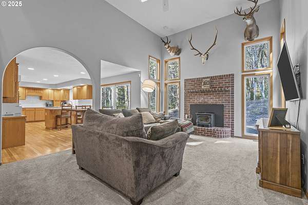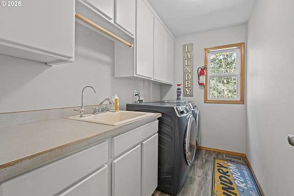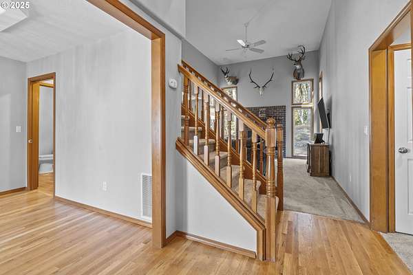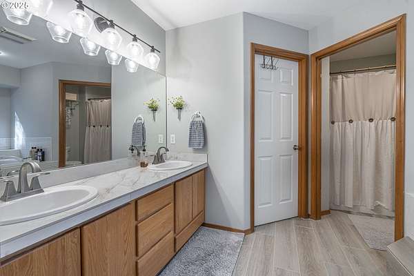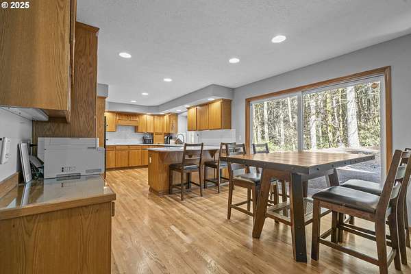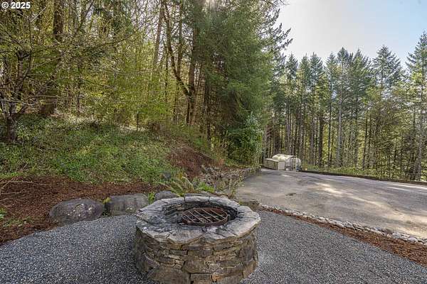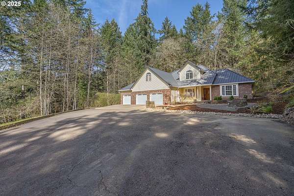 Enjoy a private, park-like setting just four miles from the heart of McMinnville. Sitting on 3.44 wooden acres, this home will suit a variety of lifestyles, hobbyists, and large families. The current owner enjoys daily wildlife sightings, great privacy, and a quiet, relaxing environment. The 2,594 square foot home was custom built to capture the natural beauty of the surrounding woods and allows for abundant natural light throughout, including the living room, where you'll enjoy a wood-burning stove and soaring ceilings. The foyer displays the home's quality construction, including hardwood flooring and a wood trim package. The true hardwoods extend into the kitchen, where the cabinetry remains in excellent condition with a stainless steel appliance package, appliance garage, and a pantry. The house has four large bedrooms, including a spacious primary ensuite on the main level. The bathroom was remodeled in 2021, including tile floors, new countertops, and sinks to accompany a large soaker tub and walk-in shower. Upstairs, you'll find a 26' by 17' bonus room with a wet bar, ideal for entertaining and a kids' dream! The three upstairs bedrooms are roomy, and one has a "secret" bonus space that will be adored by the next occupant. The large, three-car garage has a plethora of built-in cabinetry and storage. This space is great for hobbyists and outdoorsmen (as well as general storage and vehicles). Family and friends can gather around the firepit area in the front, benefiting from the property's private environment. The backyard is an excellent blank slate with a beautiful woodsy backdrop, ready for customization and entertaining. There is an old sports court on the property with a thick concrete slab, primed for repurposing. The driveway is paved from Baker Creek to the home, and the property is completely fenced and gated.