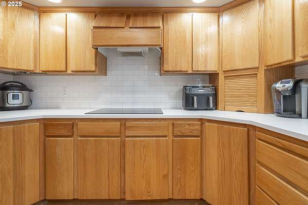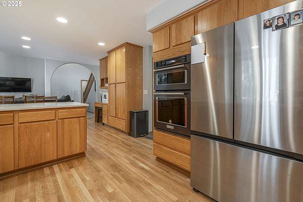 - Appliance Garage, Builtin Oven, Builtin Refrigerator, Cooktop, Disposal, Plumbed For Ice Maker, Quartz, Solid Surface Countertop, Stainless Steel Appliance