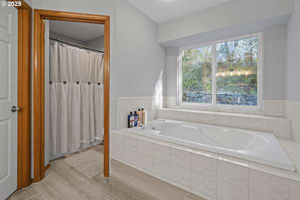 - Ceiling Fan, Garage Door Opener, High Ceilings, Jetted Tub, Laundry, Plumbed For Central Vacuum, Soaking Tub, Tile Floor, Vaulted Ceiling, Washer Dryer, Wood Floors