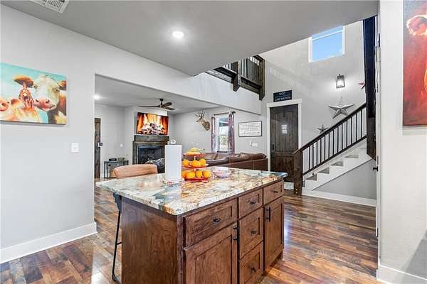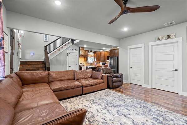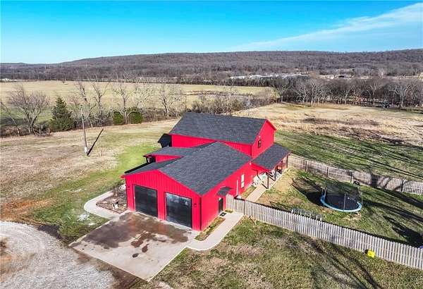 Welcome to your dream home where modern farmhouse meets wide-open space & breathtaking views. Built in 2023, this stunning home sits on 6 scenic acres and offers 4 bedrooms plus an office or an optional 5th bedroom, 2.5 baths, & thoughtfully designed living spaces. Has soaring vaulted ceilings, warm LVP flooring, barn door accents, propane fireplace, granite countertops, ample cabinetry, large walk-in pantry tucked under the stairs, formal dining room, huge custom tile shower, freestanding soaking tub, and generous walk-in closets in all bedrooms offering excellent storage throughout the home. Upstairs, enjoy a bonus/second living area or additional flex space. Energy-efficient with 2x6 exterior walls, spray foam insulation, LED lighting, & total electric utilities. Oversized 2-car garage with loft storage & 10x10 insulated doors. Huge covered porch, covered patio with privacy fence, hot tub hookup (hot tub may convey), & a 2,640 sq ft shop only 8 months old. Rural setting close to Fayetteville and Siloam Springs.