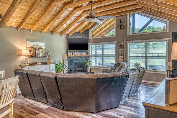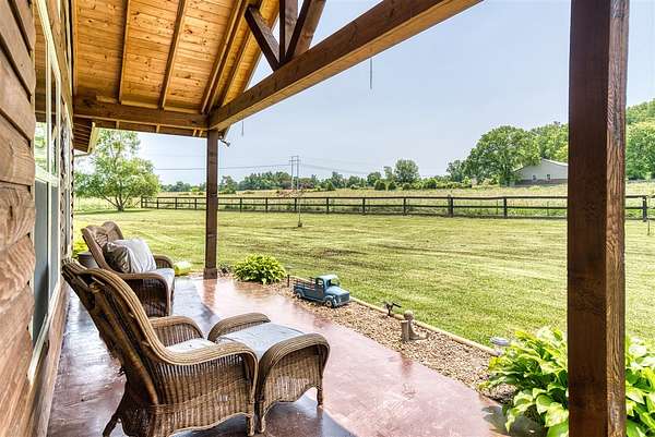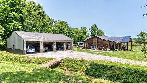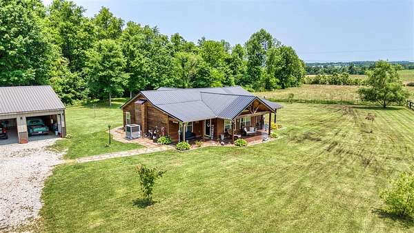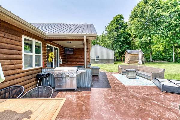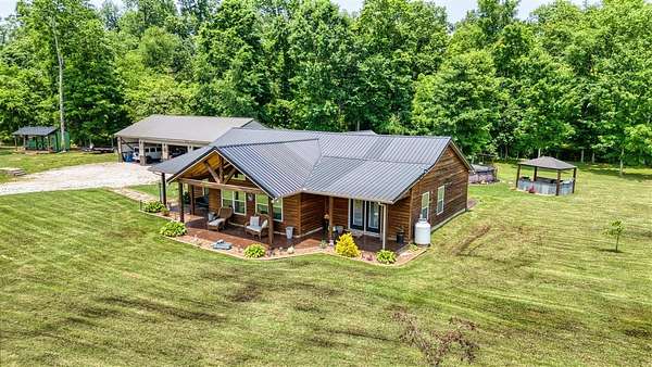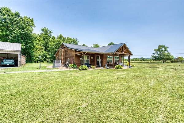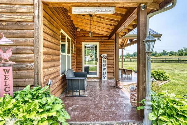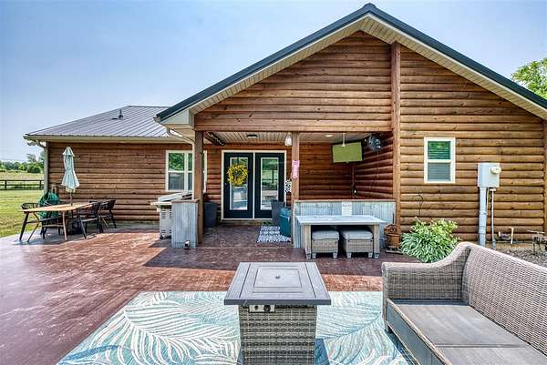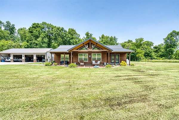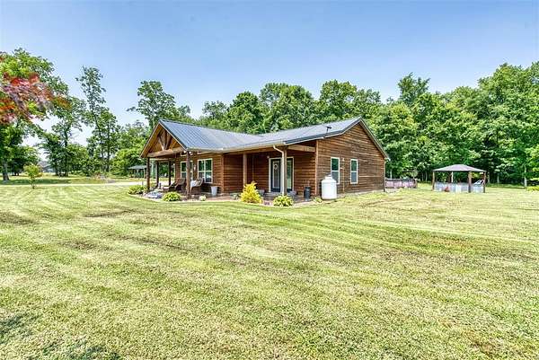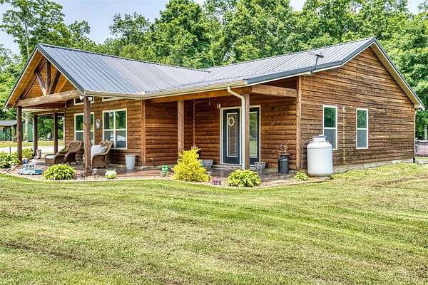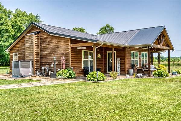 Welcome to your peaceful retreat in the countryside! Nestled on 2.33 picturesque acres, this charming 3-bedroom, 2-bathroom log-sided cabin offers 1,846 square feet of rustic character with modern comforts. From the moment you step onto the covered front porch, you'll feel right at home. Inside, vaulted ceilings and a cozy fireplace create a warm and inviting atmosphere. The spacious kitchen and open floor plan make entertaining easy, while the spa-like primary bathroom is a true escape--featuring a beautifully tiled walk-in shower and a luxurious soaking tub. Step outside and soak in the peaceful sounds of the creek flowing just behind the house, or relax on the spacious back porch and patio. Enjoy summer fun in the above-ground pool or host unforgettable gatherings under the charming pavilion. The property also features a detached 4-car carport for covered parking, a versatile 30x52 open-sided structure -- ready to be customized with garage doors, concrete flooring, and electricity to suit your needs. Whether you're looking for a private getaway or a forever home, this property offers the perfect blend of nature, comfort, and country living.