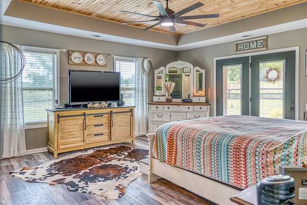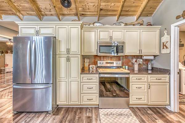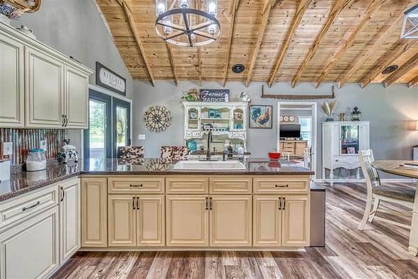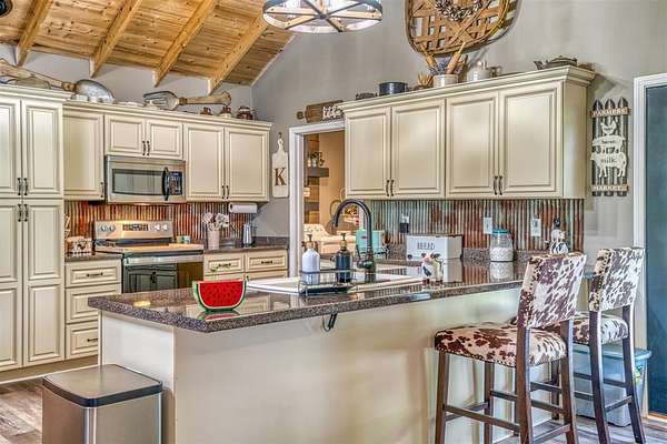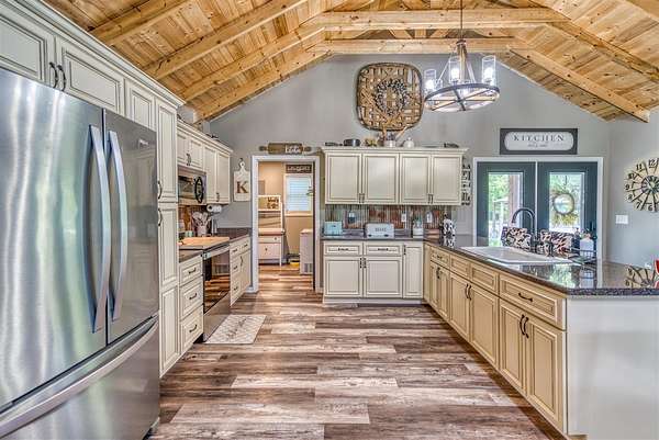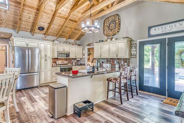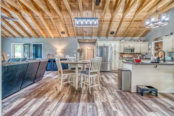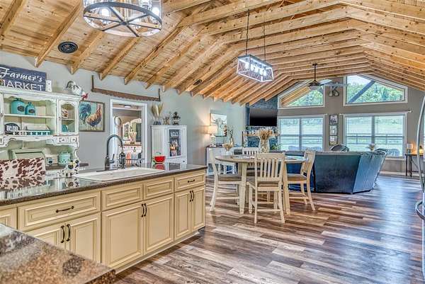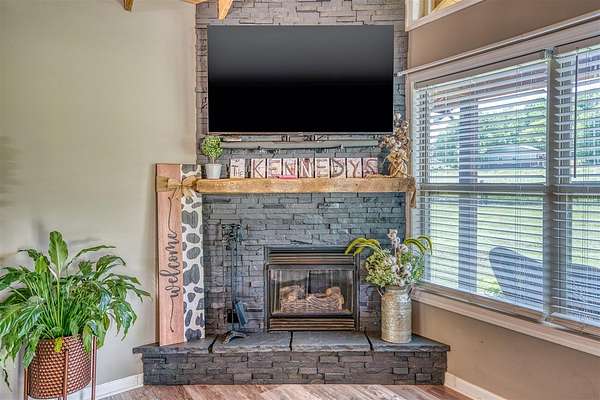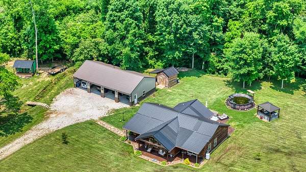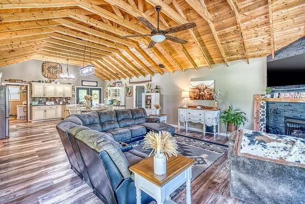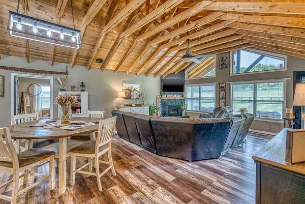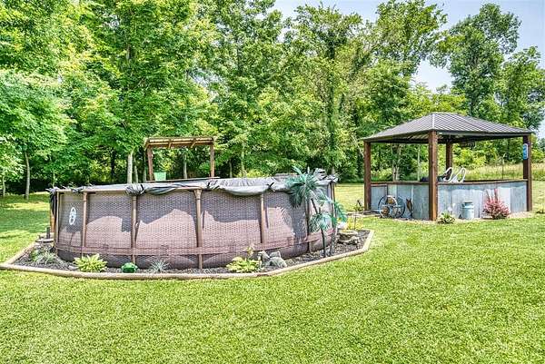 Welcome to your peaceful retreat in the countryside! Nestled on 2.33 picturesque acres, this charming 3-bedroom, 2-bathroom log-sided cabin offers 1,846 square feet of rustic character with modern comforts. From the moment you step onto the covered front porch, you'll feel right at home. Inside, vaulted ceilings and a cozy fireplace create a warm and inviting atmosphere. The spacious kitchen and open floor plan make entertaining easy, while the spa-like primary bathroom is a true escape--featuring a beautifully tiled walk-in shower and a luxurious soaking tub. Step outside and soak in the peaceful sounds of the creek flowing just behind the house, or relax on the spacious back porch and patio. Enjoy summer fun in the above-ground pool or host unforgettable gatherings under the charming pavilion. The property also features a detached 4-car carport for covered parking, a versatile 30x52 open-sided structure -- ready to be customized with garage doors, concrete flooring, and electricity to suit your needs. Whether you're looking for a private getaway or a forever home, this property offers the perfect blend of nature, comfort, and country living.