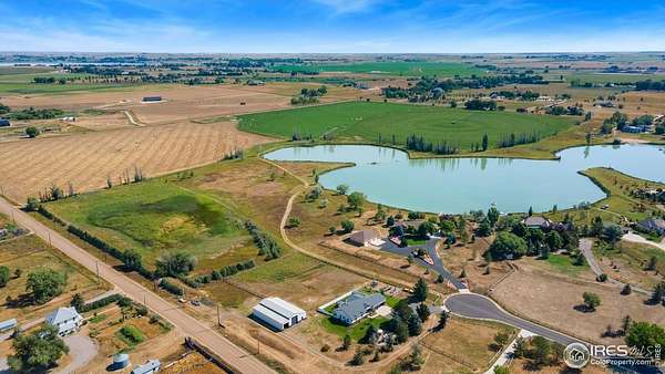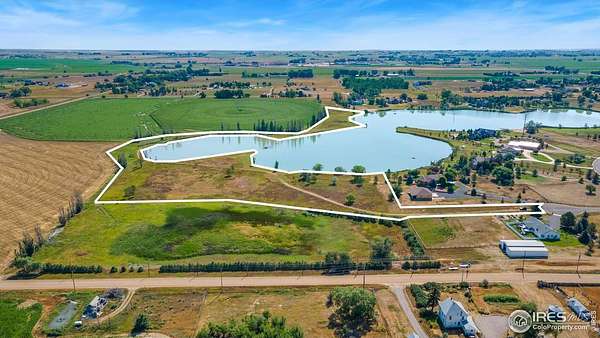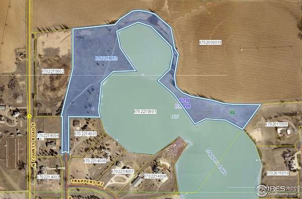 RARE find in this incredible ~14 acre lakefront lot with approximately 3000 feet of wraparound shoreline on a private non-motorized 35 acre lake, dock possibility, dramatic mountain views, country feel and privacy, and options for building your dream home. Imagine a home here with room to breathe and space to ride horses, ATVs, or bikes around the lake. A life with daily swimming and fishing in those warmer months and ice skating or hockey in winter. Just minutes to I-25 and town yet offers a private country feel. Additionally this lot may be accessed via the paved roads in Trappers Point neighborhood or by a driveway easement off the county road to the west. ELCO water tap is at property line, but will be needed to be paid at a cost of $15,036. Soils report and survey available. Property recently appraised for $1,035,000!