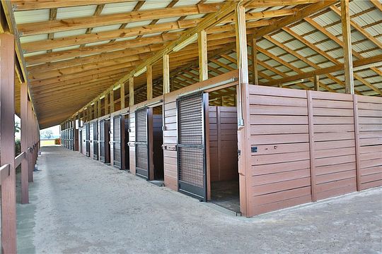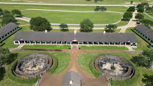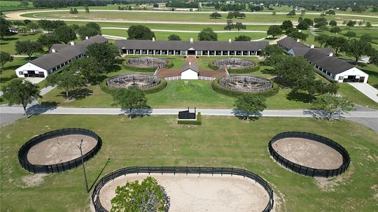The facility boasts six barns with a total of 198 stalls, including two spacious 40-stall center aisle barns, a 38-stall shed row barn, a 24-stall shed row barn, a 30-stall shed row barn, and a 26-stall shed row barn. With versatility to accommodate any discipline, this property presents exceptional training opportunities on dirt and turf surfaces.