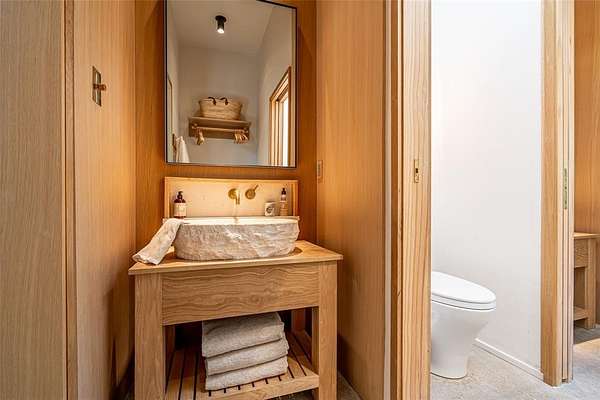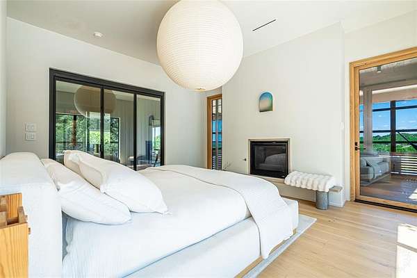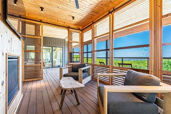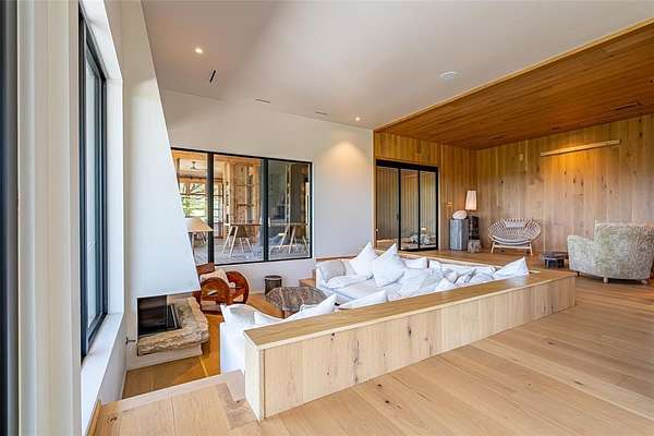 Modern luxury home meets beautiful sloping treed land with breathtaking views and rolling hills on 5 acres! One of the best views in Mountain Lakes Custom designed home by architect Paul Merrill. This stunning home and property incorporates harmony, nature, modern design, and peaceful quiet tranquility. The finer details: 2 levels. Ground level features a rear entry 2 car garage. Large game room with ample entertainment features. Full bath with oversized walk in shower just off the game room. From the game room you have floor to ceiling glass with a stunning view out to the hillside. Next walk up the stairs to the 2nd level and experience stunning luxury and simplicity! Main level features a sunken living room with multi side fireplace. From the sunken living room you will enjoy your fireplace with stunning views looking out to the hillside and acreage. Main kitchen features a large island with sink, ample cabinet space, floor to ceiling windows with more stunning views, and a dining area just off the kitchen. Exquisite built in side by side refrigerator just off the main kitchen. Large walk in butlers pantry 2nd kitchen stores all your food and appliances. 2 guest bedrooms connected by a Jack and Jill Bath with double sinks and a large walk in shower. Elegant half bath for the guests. Separate master suite for the ultimate in privacy. Master suite features a glass gas fireplace, separate screened in sitting area with a wood burning fireplace. Oversize master suite walk in shower AND a private outdoor shower to become on with nature. Don't miss the spa room just off the master bath for the ultimate in pampering! Beautiful covered breezeway connects the 2 distinct structures beneath 1 roof. Floor to ceiling windows throughout most of the home to maximize the stunning views. Beautiful 1500 square foot raised deck balcony built with Cali Bamboo surround the home. Elegant waterfall at the entrance and 8 ft limestone rock outside! Engineered wood flooring throughout!