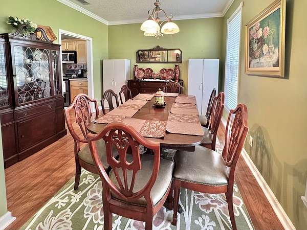 Discover the perfect blend of tranquility and modern living in this charming 1,870 sq. ft. home three bedroom two bath, nestled in the peaceful countryside of Moultrie, Georgia. Newly installed Air conditioning in 2024 and roof was replaced in 2019. As you step inside, you'll be greeted by an open foyer and a pitched ceiling living room. Great space for entertaining guests. The kitchen boasts an island with additional storage, perfect for meal prep or casual dining, and a window that offers a picturesque view of the backyard. This home also features large laundry room equipped with built-in cabinets. This newly listed property offers a spacious master bedroom with the potential for a fourth bedroom or a convenient office space if you don't need a second dining area. The exterior has a beautiful back wraparound porch great for family gatherings. Enjoy the serenity of country living with stunning natural landscape views surrounding your new home. Whether you're starting a family, looking for a peaceful retreat, or wanting a home office, this property is ready for you to move in and create lasting memories. Schedule your viewing today!